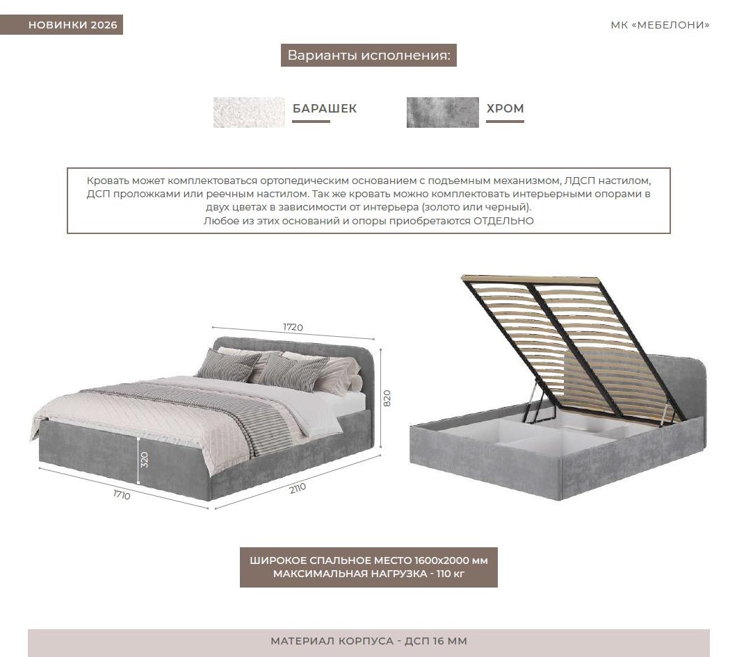 Кровать 1,6 м "Лофт" КР-18 (без основания)