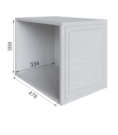 Антресоль исполнена из качественных материалов (корпус — ЛДСП, фасад — МДФ), ширина 350 мм, высота 400 мм и глубина 516 мм.