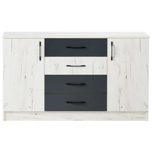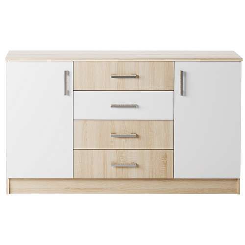 Комод К1400 "БЕАТРИС" двухстворчатый с 4-мя ящиками на роликовых направляющих. На фасады ящиков устанавливается пластиковая ручка с вставкой "Дуб Сонома".