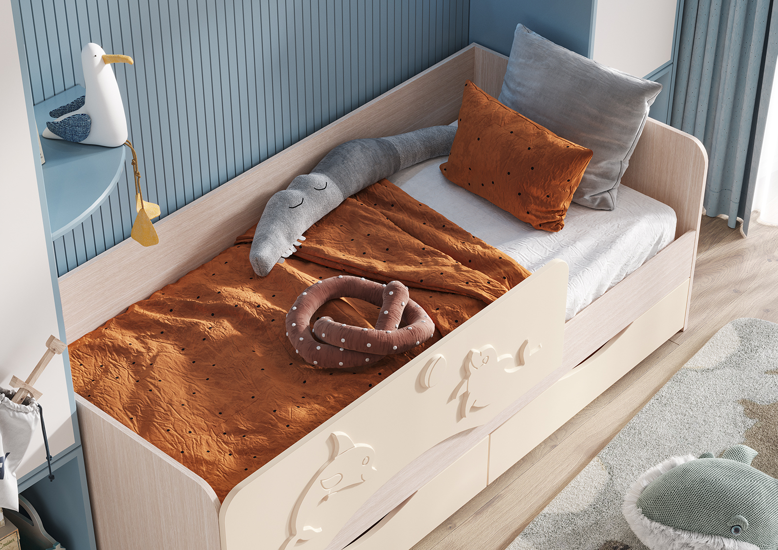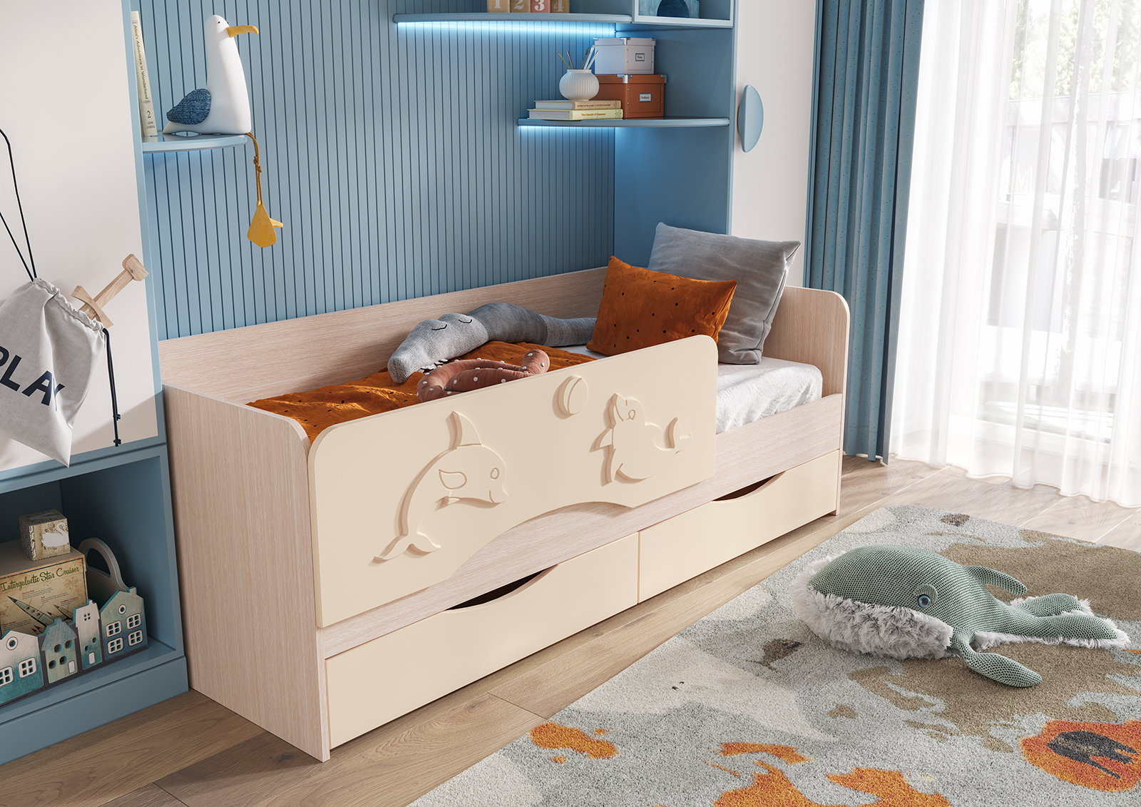 Кровать "Алиса" – это отличное решение для детского пространства! Вместительные ящики под спальным местом позволяют хранить игрушки, одежду и другие детские принадлежности, экономя место в комнате. Отдавая предпочтение этой кровати, вы выбираете удобство, надежность и порядок в детской комнате!
