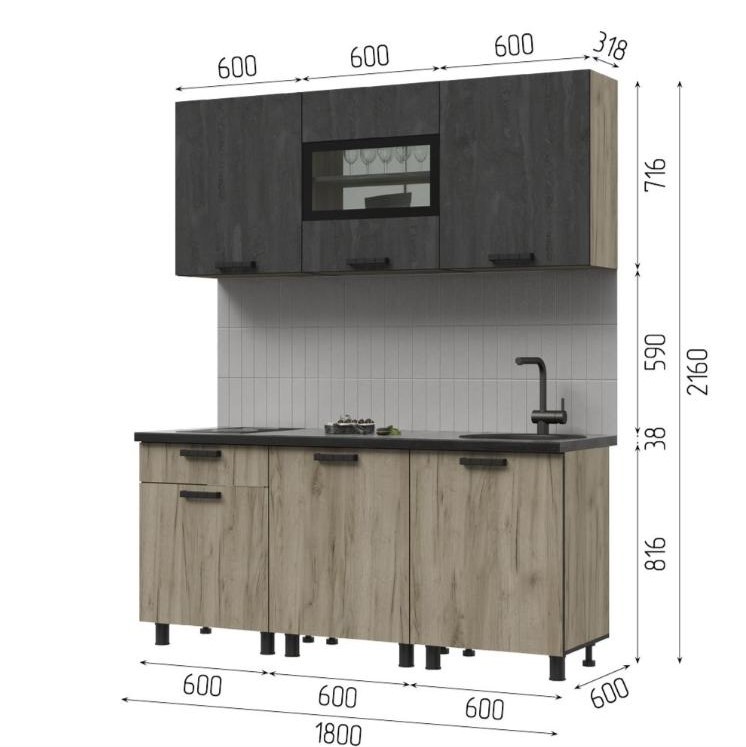 Высота верхних модулей: 716мм