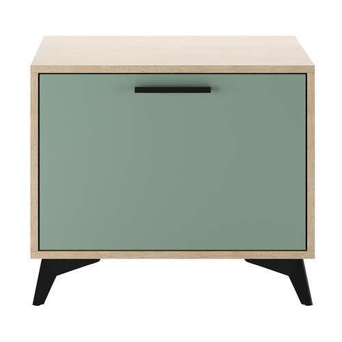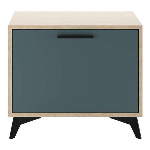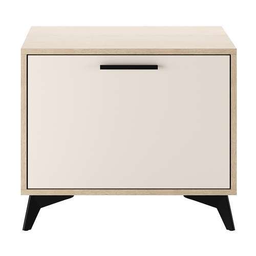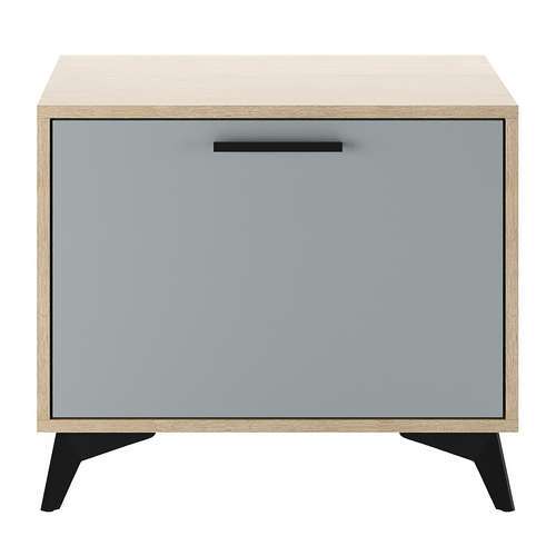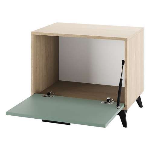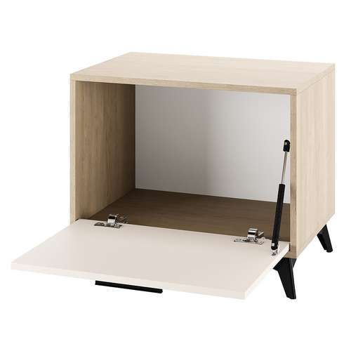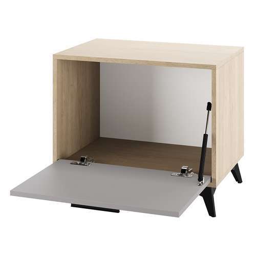 Тумба 600 1С "ЕВА" с откидным фасадом (газлифт). Фасад, крышка и лицевой периметр тумбы обработаны кромкой 1 мм. Чёрная металлическая ручка и ножки-опоры.