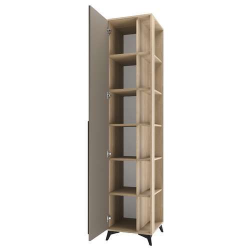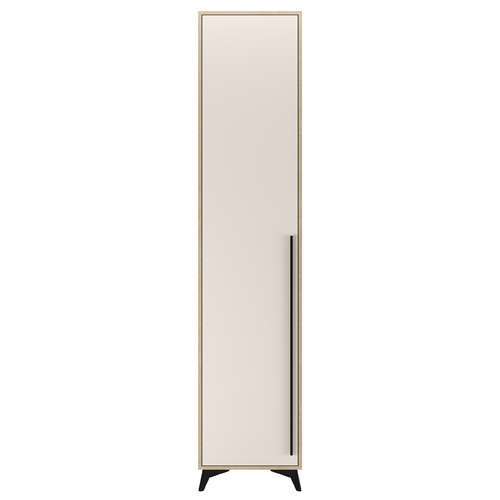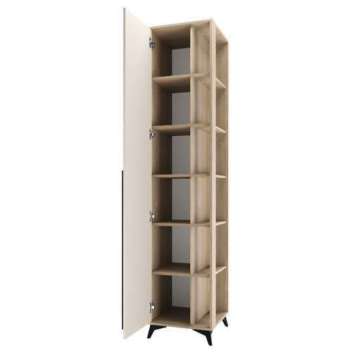 Пенал торцевой 480 1С "ЕВА" с полками. Фасад и лицевой периметр пенала обработаны кромкой 1 мм. Чёрная металлическая ручка-рейлинг и ножки-опоры.