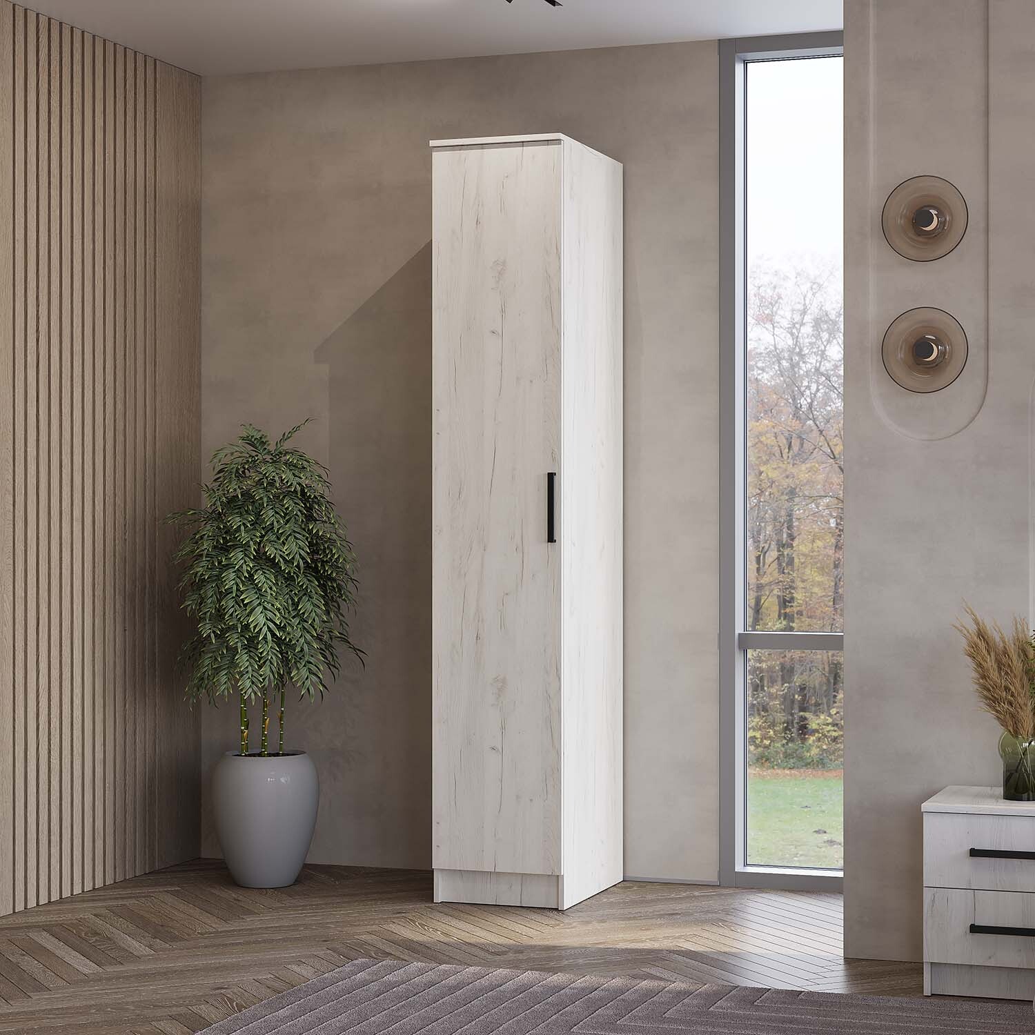 Организовать хранение вещей в комнате или гостиной можно с помощью пенала "Фиеста". Наполнение - комбинированное (комплектуется штангой и полками).