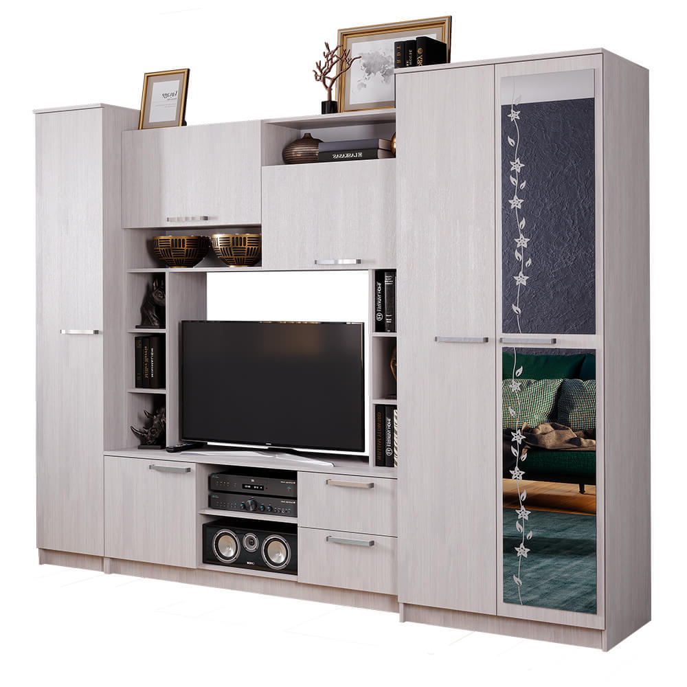 Гостиная "Флора" от бренда БТС — это сочетание стиля, качества и удобства. Изготовлена из надежных материалов (ЛДСП), гостиная отличается практичностью и долговечностью. Размеры идеально подойдут даже для небольших помещений, а ниша под ТВ обеспечит комфортный просмотр любимых передач. Благодаря гарантии на 24 месяца вы можете быть уверены в качестве продукта. Создайте уютную атмосферу у себя дома вместе с этой замечательной мебелью!