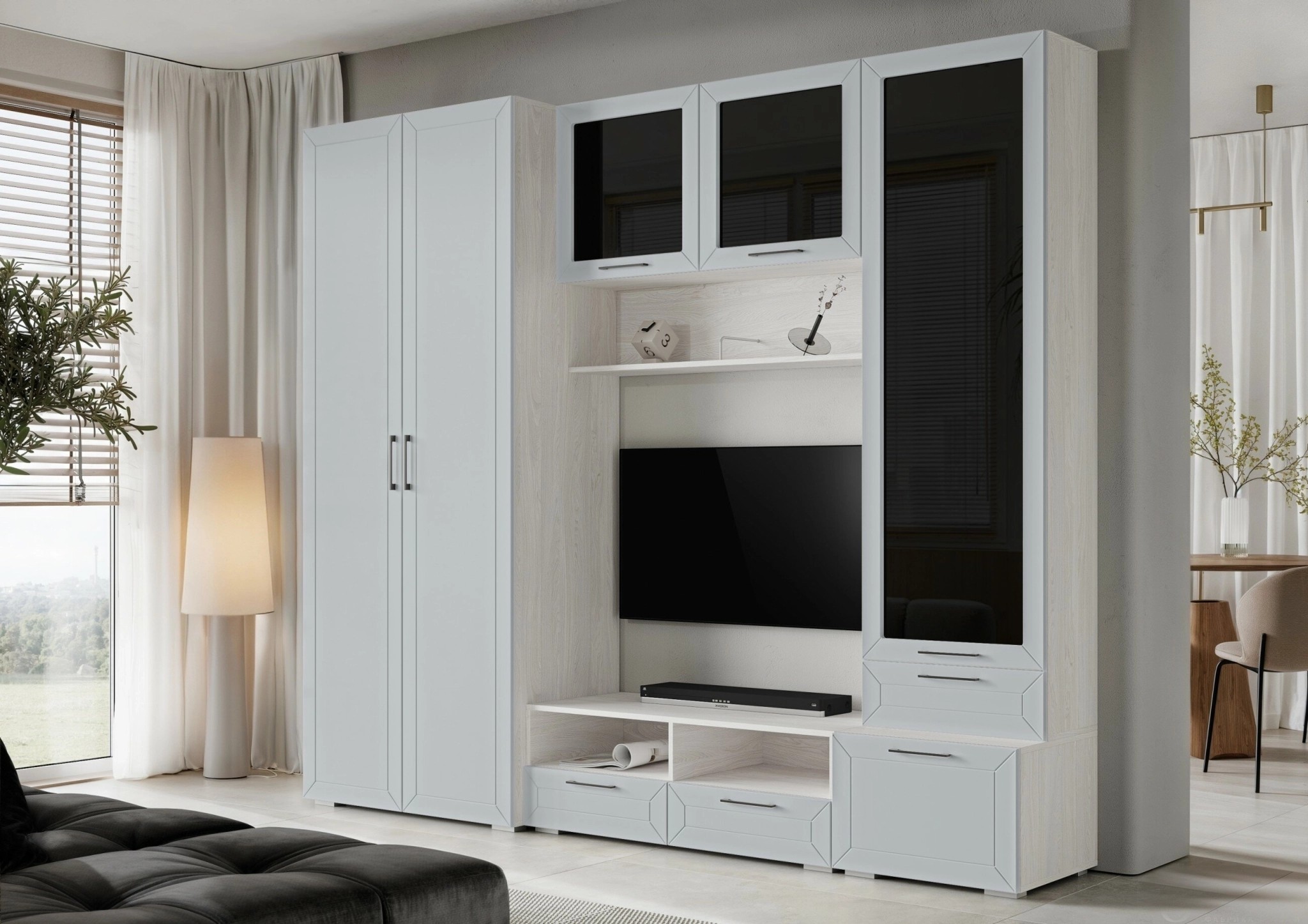 Современная Коллекция Глэдис выполнена из современных материалов и представлена в совершенно новой модной палитре цветов. Интересное дизайнерское решение использовано при оформлении лицевой стороны: глубокая фрезеровка имитирует рамку и придает фасадам объем и весомость. Всего лишь деталь, но мебель от этого преображается, выглядит дорого и благородно. При изготовлении модулей использованы направляющие полного выдвижения, позволяющие до упора выдвигать ящики, а также стильная эффектная фурнитура.