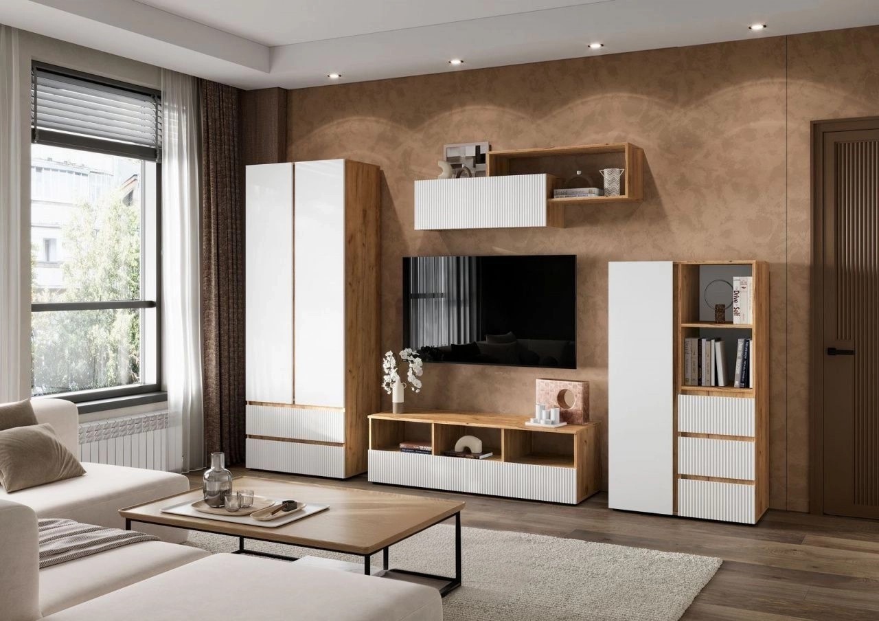 Модули коллекции "Хелен" выстраивают удобную систему хранения: здесь предусмотрены места и для одежды,и для частого используемых вещей. Разные по размеру секции объединены в готовое решение, делая интерьер организованным и практичным.