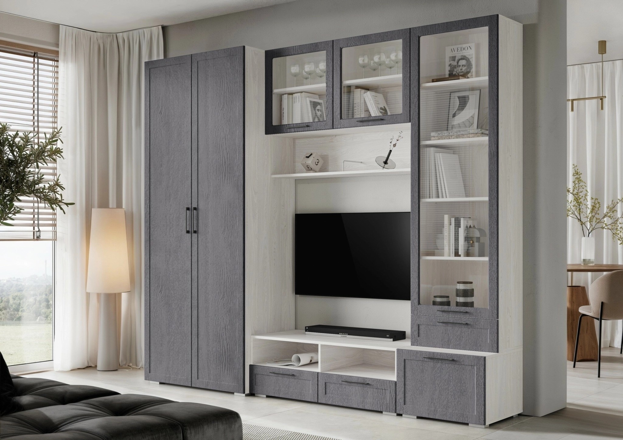 Коллекция Квадро в скандинавском стиле для создания уютной обстановки. Модульная программа полностью соответствует современным запросам к функциональности и эстетике. Ваша мебель не только будет выглядеть стильно, но богато и статусно. Особенность коллекции – использование новых цветовых оттенков из серии "Синхропоры". Это глубокое фактурное тиснение, которое ощущается не только на ощупь, но и визуально. Оно максимально имитирует естественную фактуру деревянных поверхностей, усиливая эффект натуральности. Рамочные фасады придают мебели объем, они выполнены из МДФ. Корпус всех модулей изготовлен из ЛДСП и выкрашен в один и тот же цвет: Ясень Анкор тёмный или Ясень Анкор светлый. Используемая в программе фурнитура отличается высоким качеством, надежностью и удобством пользования.