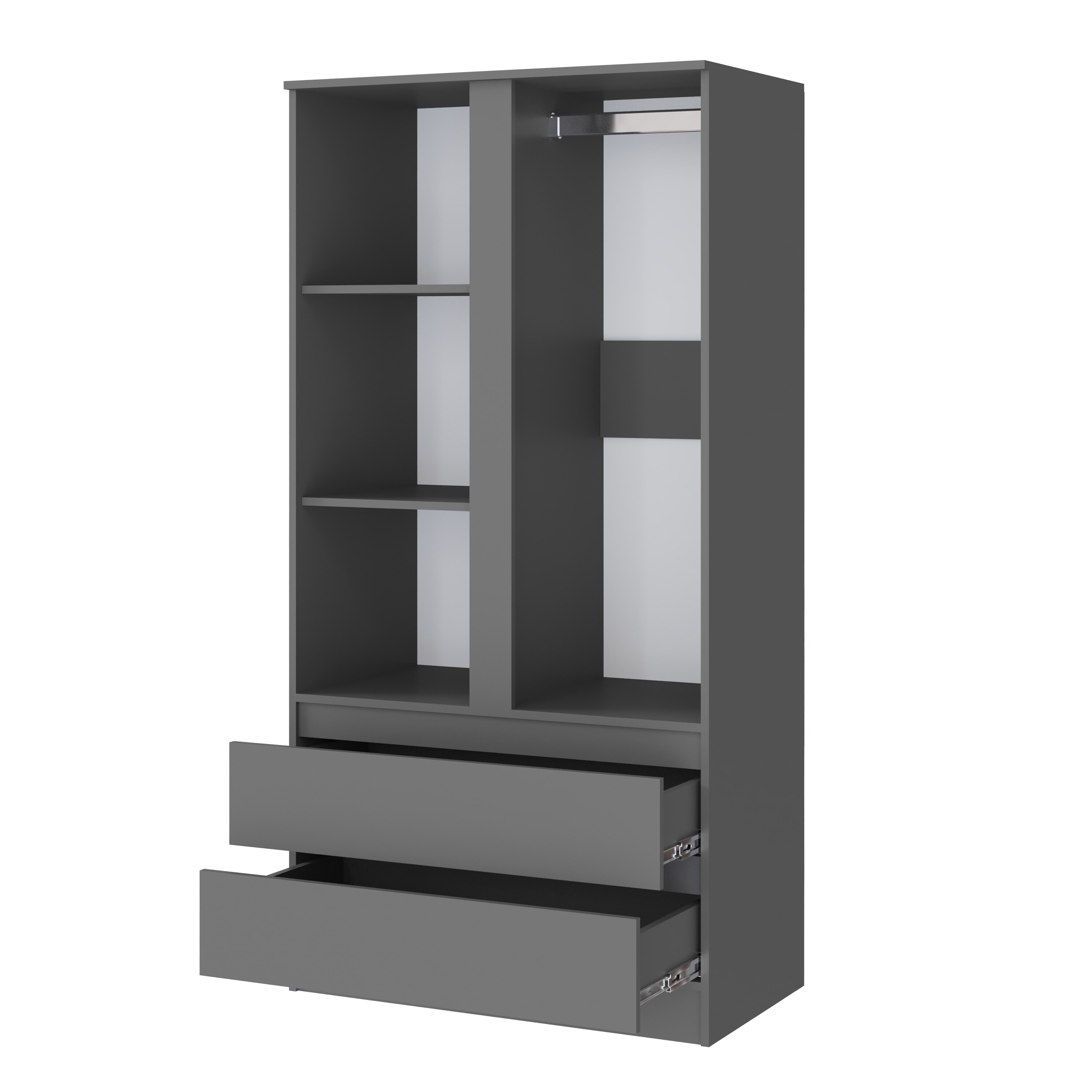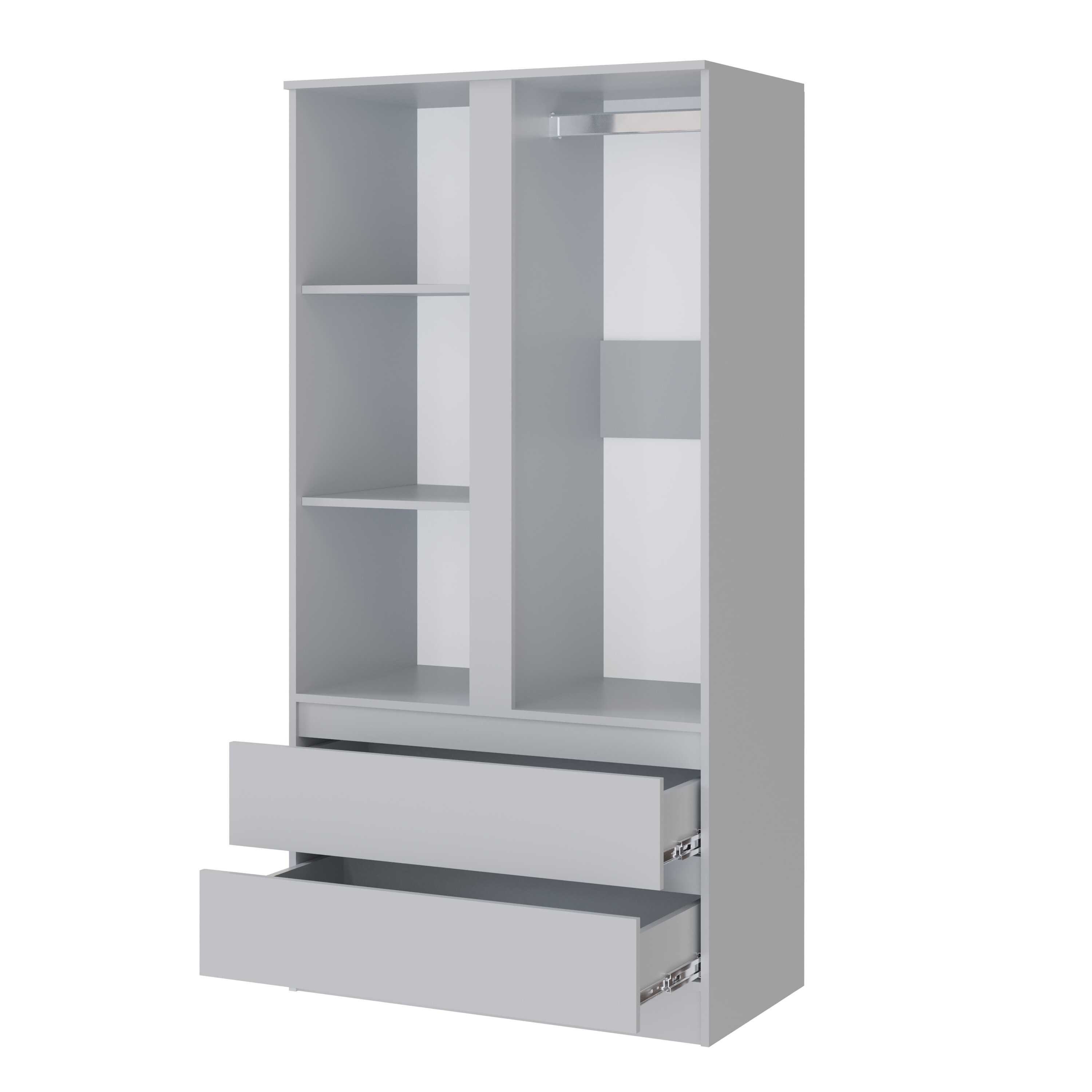 Такой шкаф без ручек с ящиками прекрасно впишется в современный интерьер, обеспечивая практичность и стиль в одном исполнении.