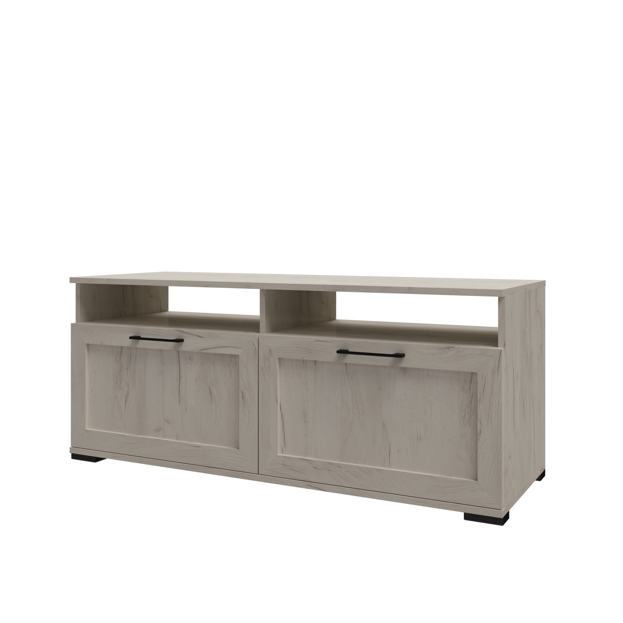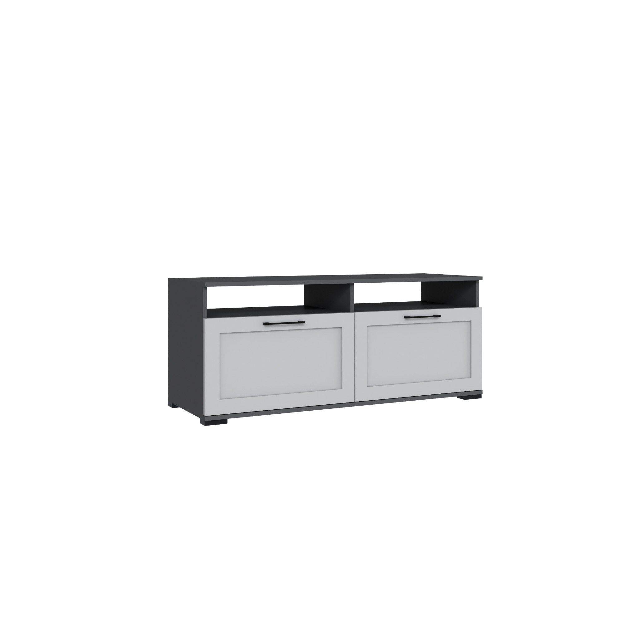 Тумба оборудована откидными фасадами, которые обеспечивают удобный доступ к хранящимся в ней предметам, а также защищают содержимое от пыли. Также в ее конструкции предусмотрена открытая ниша, которая может использоваться для размещения аудио- и видеоаппаратуры, книг, декоративных предметов или других вещей.