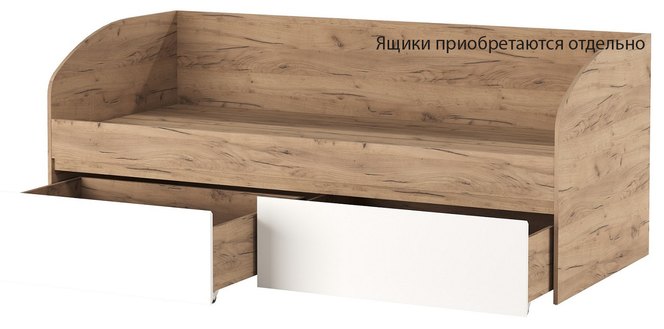 Кровать-софа "ГРЕТТА" комплектуется 2-мя вместительными выкатными ящиками на колёсиках. Кровать-софа в сочетании с другими элементами коллекции «ГРЕТТА» будет прекрасным решением для грамотной организации пространства спальни для детей и подростков, учитывая габариты спального места: 2000 х 900 мм. Применение интегрированной ручки на фасадах делает модель стильной и безопасной – ящики открываются за профилированные выступы. Фасады и боковины кровати обработаны кромкой 1 мм.