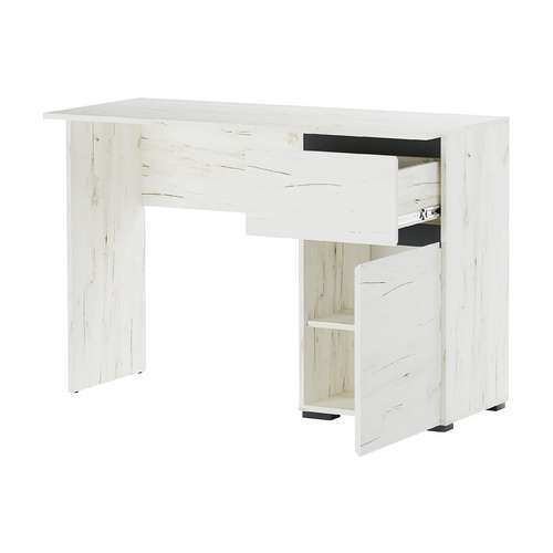 Стол письменно-компьютерный 1С1Я "ГРЕТТА" с ящиком на направляющих полного выдвижения. Крышка стола и фасады обработаны кромкой толщиной 1 мм, что делает работу за столом более комфортной и удобной. Применение интегрированной ручки на фасадах делает модель стильной и безопасной – дверцы открываются за профилированные выступы. Чёрная регулируемая ножка-опора.