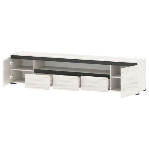 Тумба 2250 2С3Я "ГРЕТТА" 2-створчатая с 2-мя ящиками на направляющих полного выдвижения. Применение интегрированной ручки на фасадах делает модель стильной и безопасной – дверцы и ящик открываются за профилированные выступы. Фасады обработаны кромкой 1 мм.