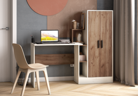 Особенностью данного стола является наличие шкафа справа и открытые полки. Эти отделения предоставляют дополнительное пространство для хранения книг, папок, документов и других необходимых вещей. Шкаф позволяет организовать рабочее пространство максимально функционально и эргономично.