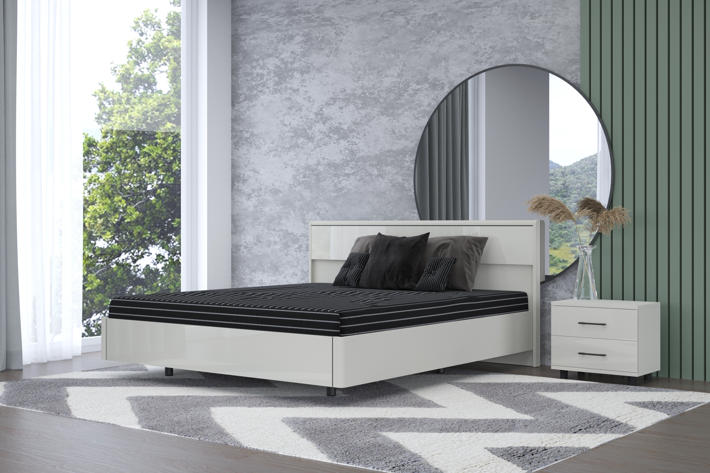 Кровать КР-5004 – модуль коллекции «Грейс», который стилистически и функционально сочетаются с другими элементами системы.