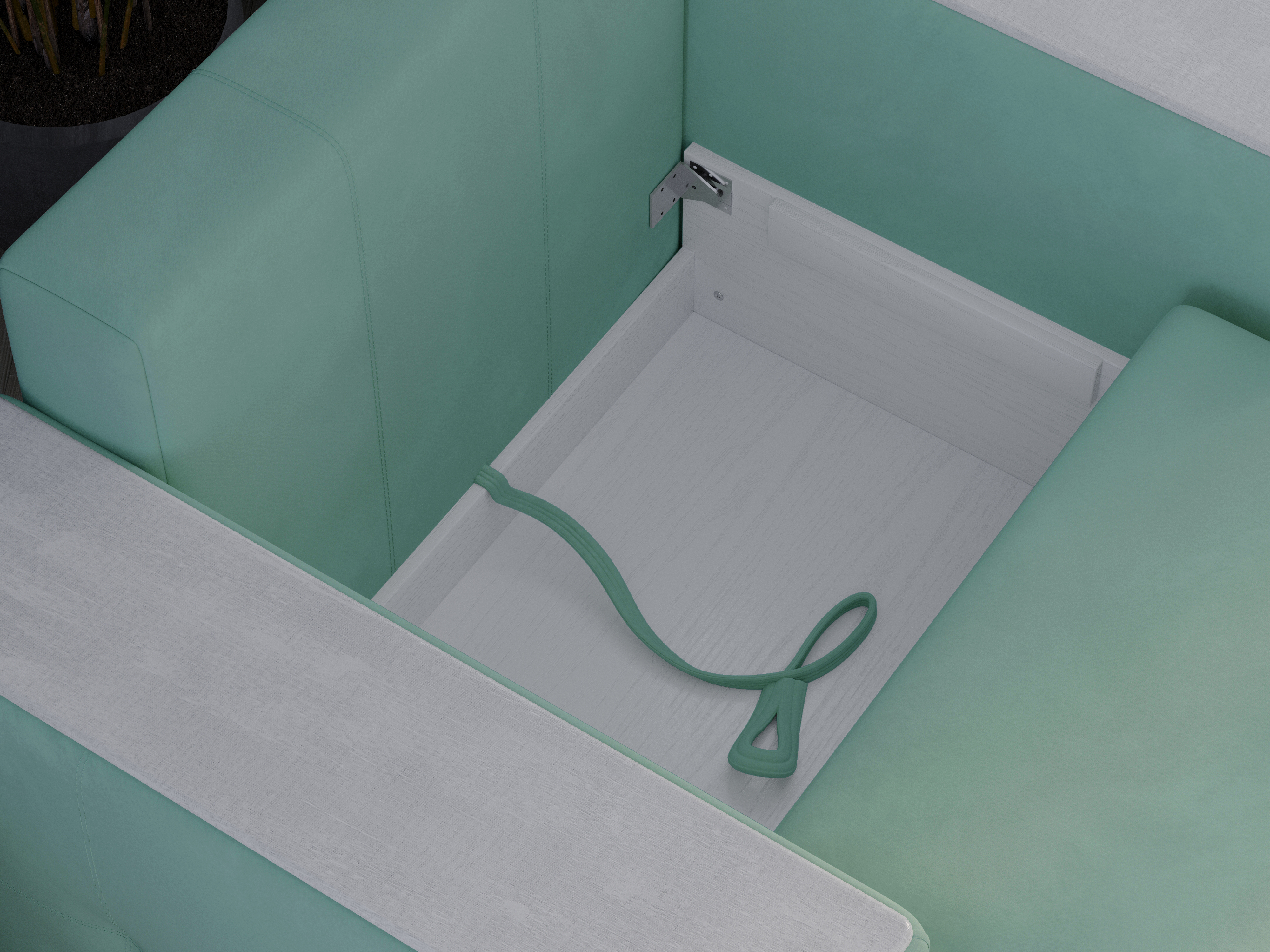 В корпусе сиденья имеется небольшой отсек для хранения.Съемная подушка спинки наполненная гипоаллергенным наполнителем и простеганная двойной отделочной декоративной строчкой.