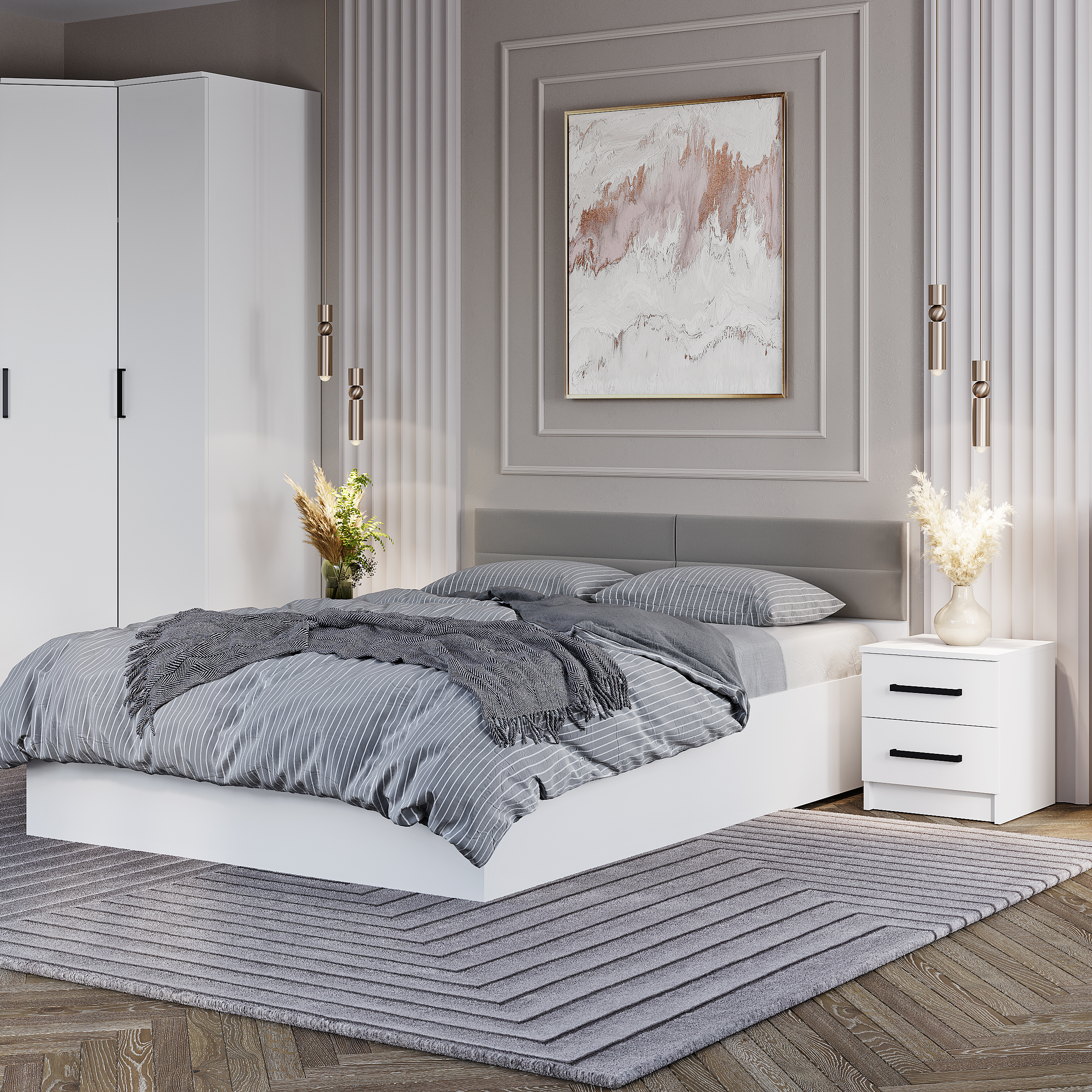 Широкая кровать в минималистичном стиле «Фьюжн» КР-18 – это модель для ценителей простого и понятного функционала. Мягкое изголовье из ткани велюр цвета "графит" добавляет комфорта спальному месту.