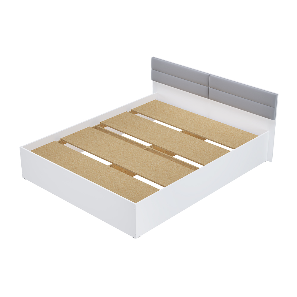 Данная модель кровати "Фьюжн" выпускается на фабрике без основания. Основание приобретается дополнительно (отдельно от кровати). На выбор: проложки ДСП/ настил ЛДСП, настил реечный либо ортопедическое основание с подъемным механизмом.