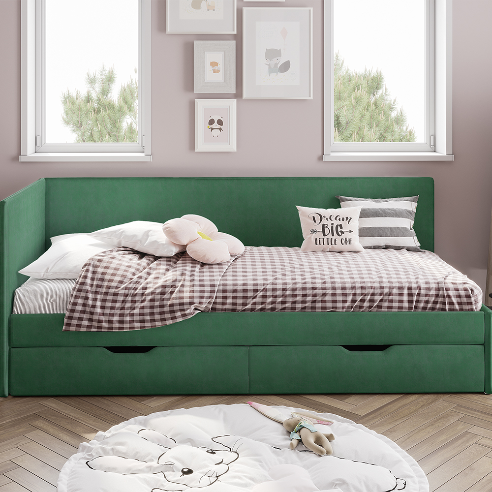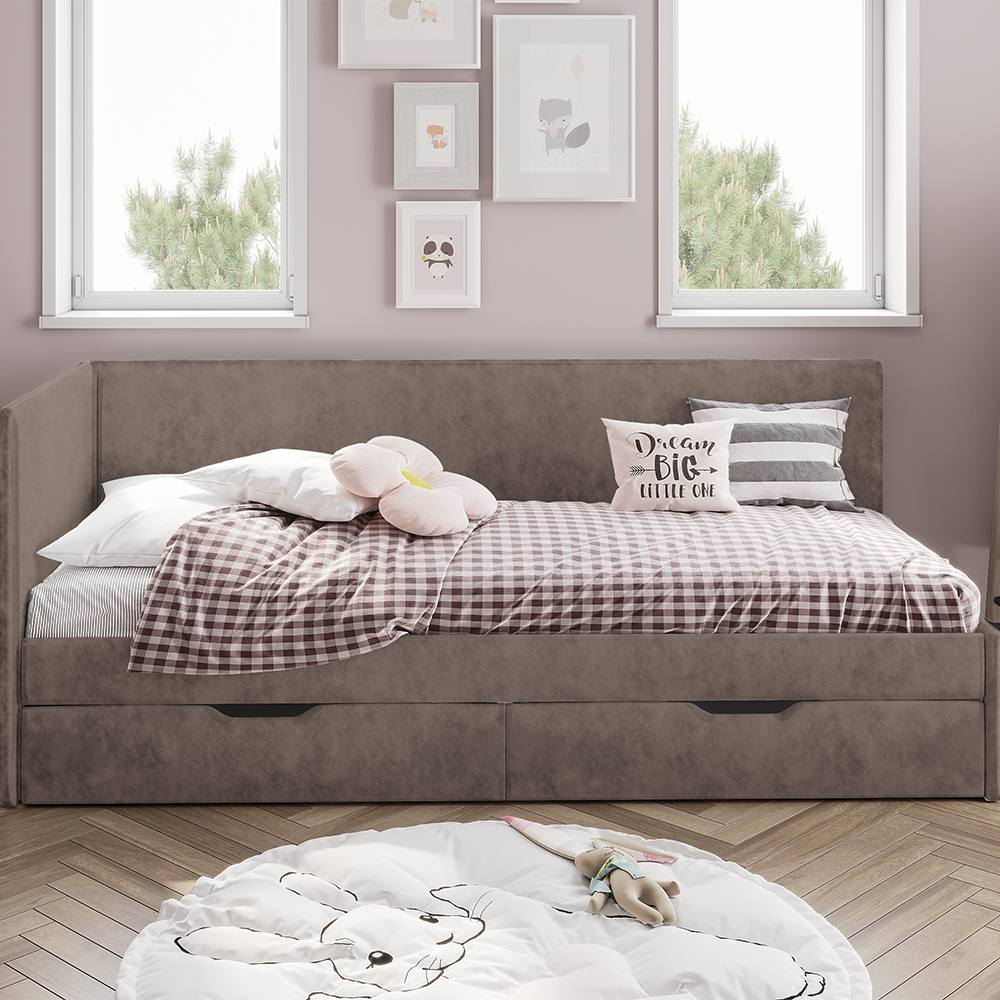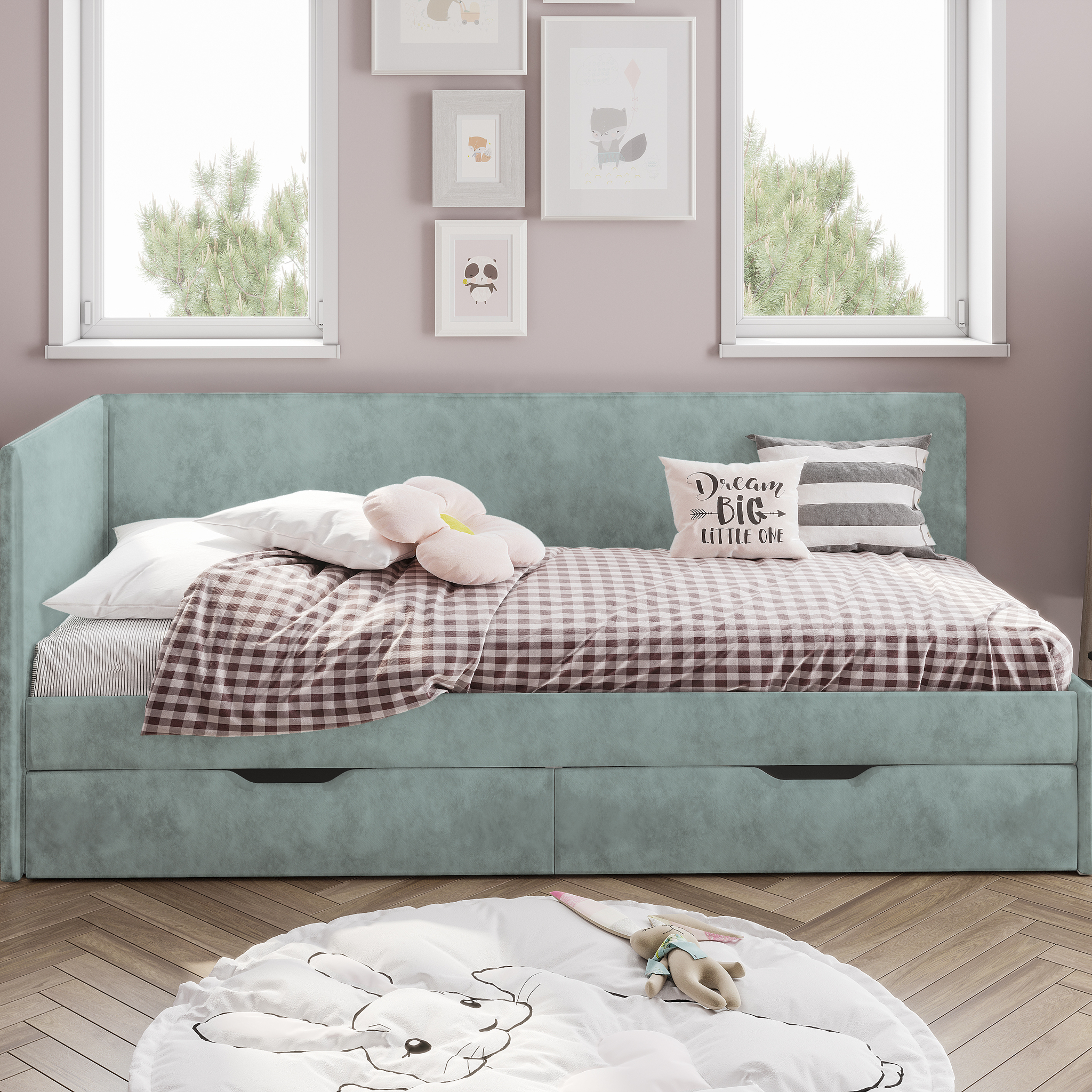 Кровать «Лео» - лучший выбор для детской комнаты. Плавные и лаконичные линии конструкции создадут атмосферу гармонии и спокойствия. Одно из важных преимуществ кровати – это мягкая обивка из велюра, что обеспечивает более комфортное и безопасное использование. Корпус – ЛДСП/ДСП 16 мм, оклеенный поролоном 20 мм и тканью велюр. Фасад – ЛДСП 16 мм, оклеенный поролоном 20 мм и тканью велюр.