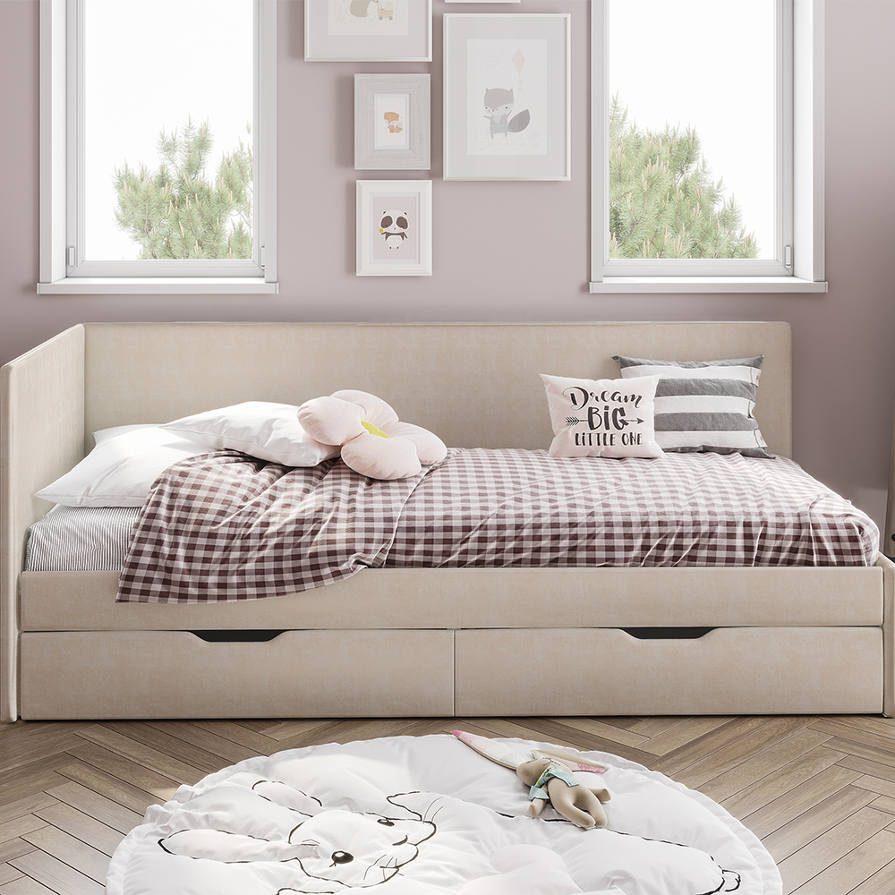 Максимальная нагрузка на спальное место – 110 кг. Максимальная нагрузка на выдвижной ящик – 10 кг.