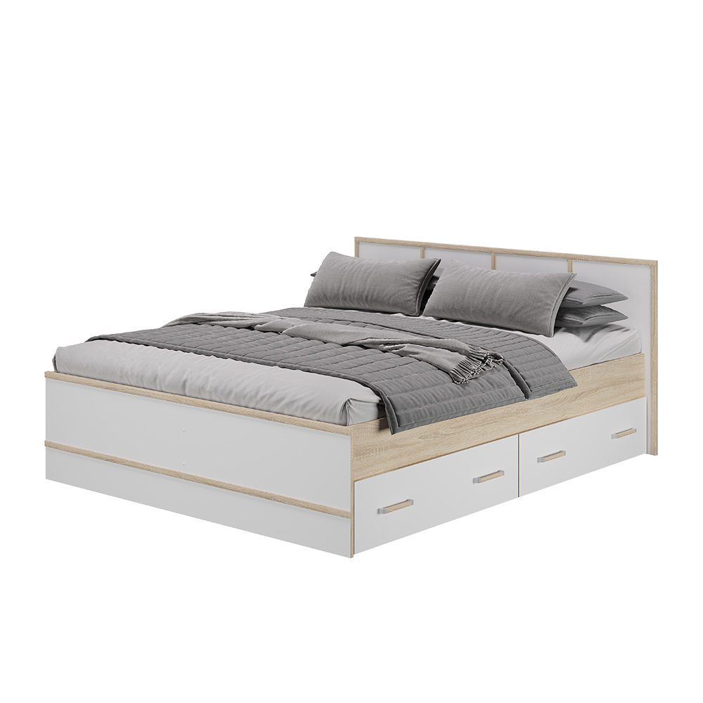 Кровать "Сакура" выполнена из ЛДСП высокого качества в контрастных цветах "сонома" и "белый", а также "венге" и "лоредо". Данная модель оснащена двумя выдвижными ящиками, в которых можно хранить постельные принадлежности или игрушки. Ящики находятся с одной стороны, но установить их можно с любой стороны. Изделие не имеет ножек, а значит избавит вас от скопления пыли под основанием. Данная модель кровати выпускается на фабрике без основания. Основание приобретается дополнительно (отдельно от кровати) - проложки ДСП либо настил ЛДСП (с кромкой) соответствующих размеров