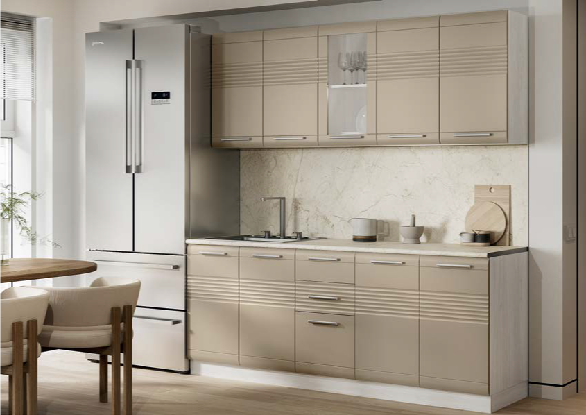 Модульная программа Афина– свежая во всех смыслах мебель . Это универсальное решение для различных стилевых направлений: классика, ретро, прованс. Пожалуй, единственное украшение коллекции – это фасады с частичной фрезеровкой. Особенность мебельной линейки – фрезерованные фасады, спокойные заглушенные цветовые оттенки.