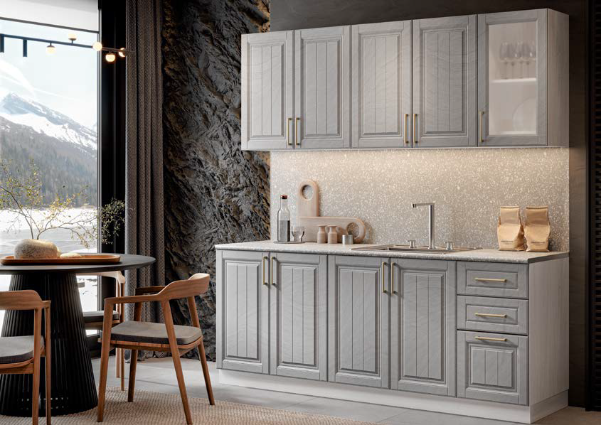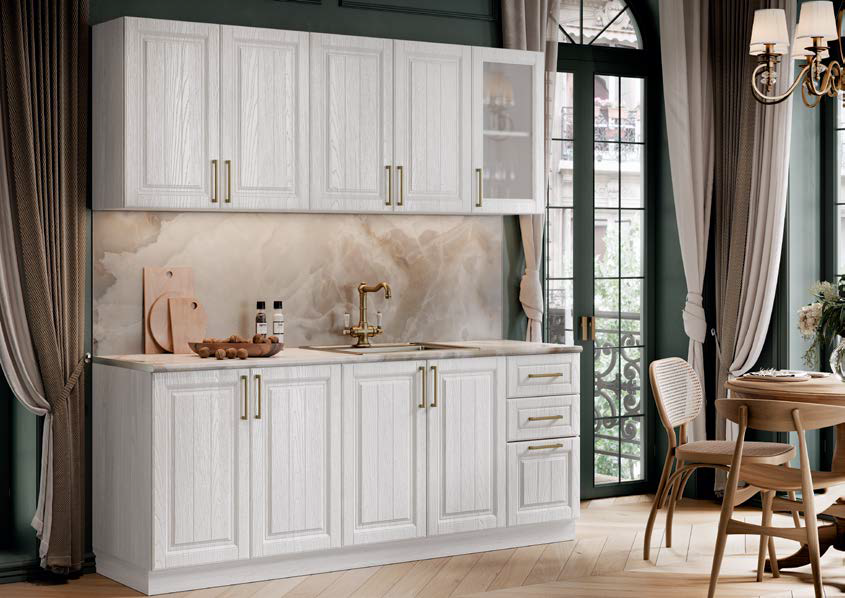 Коллекция Люкс - это превосходное сочетание стильного дизайна на фасадов, нежных оттенков и тонких золотых ручек добавит легкой роскоши вашему интерьеру. Верхние шкафы оснащены стеклянными дверцами, которые добавляют изящности и легкости в общий дизайн. Гармонично впишется в любой интерьер кухни: бохо, минимализм, прованс, современная классика или скандинавский.