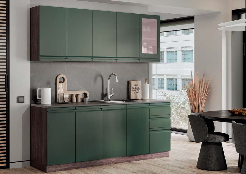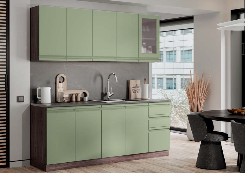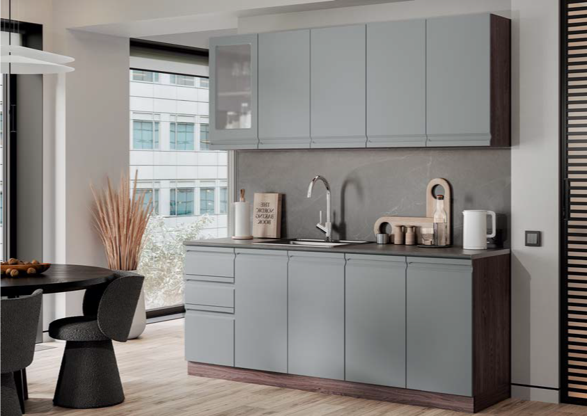 Коллекция Орион в минималистическом стиле смотрятся эффектно и современно. Интегрированные ручки создают кухне ультрасовременный вид, добавляют интерьеру лаконичности.