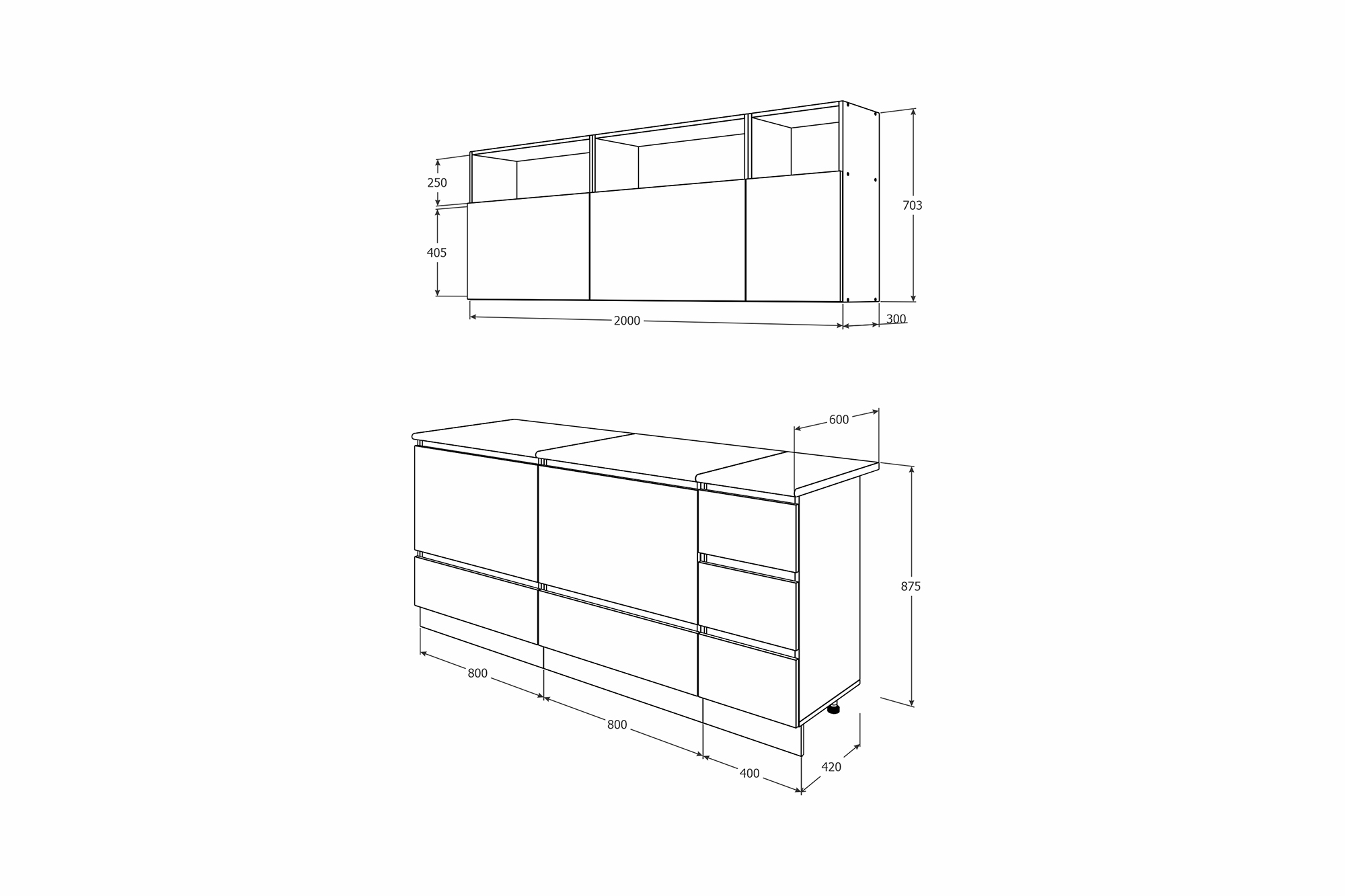 - Ящики нижнего шкафа снабжены шариковыми направляющими полного выдвижения 400мм