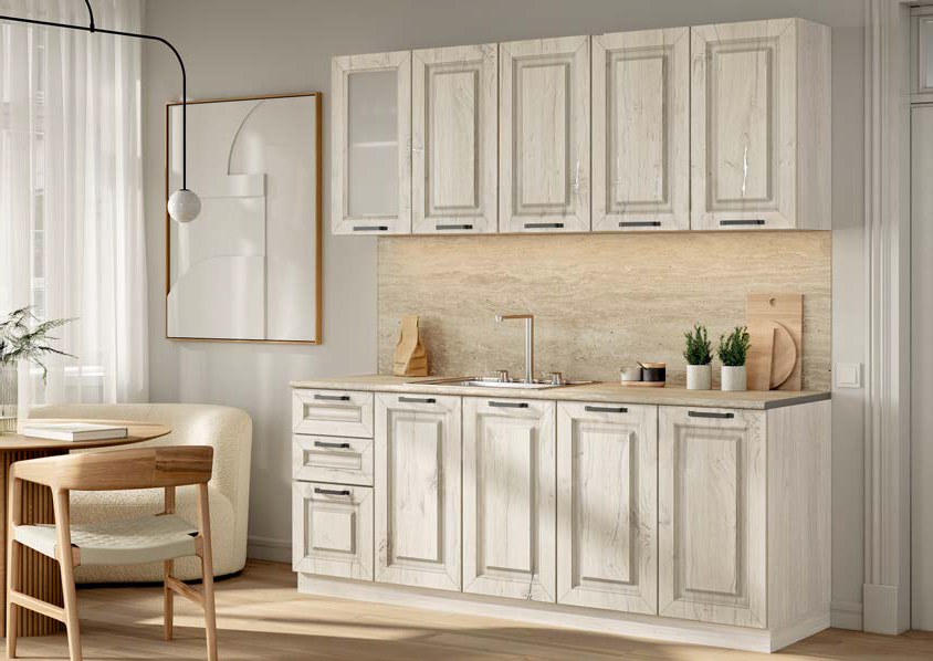 Коллекция Шале отличается натуральными древесными оттенками в лучших традициях эко стиля. Такое цветовое решение является наиболее универсальным, не привлекает излишнее внимание и сохраняет пространство невесомым.