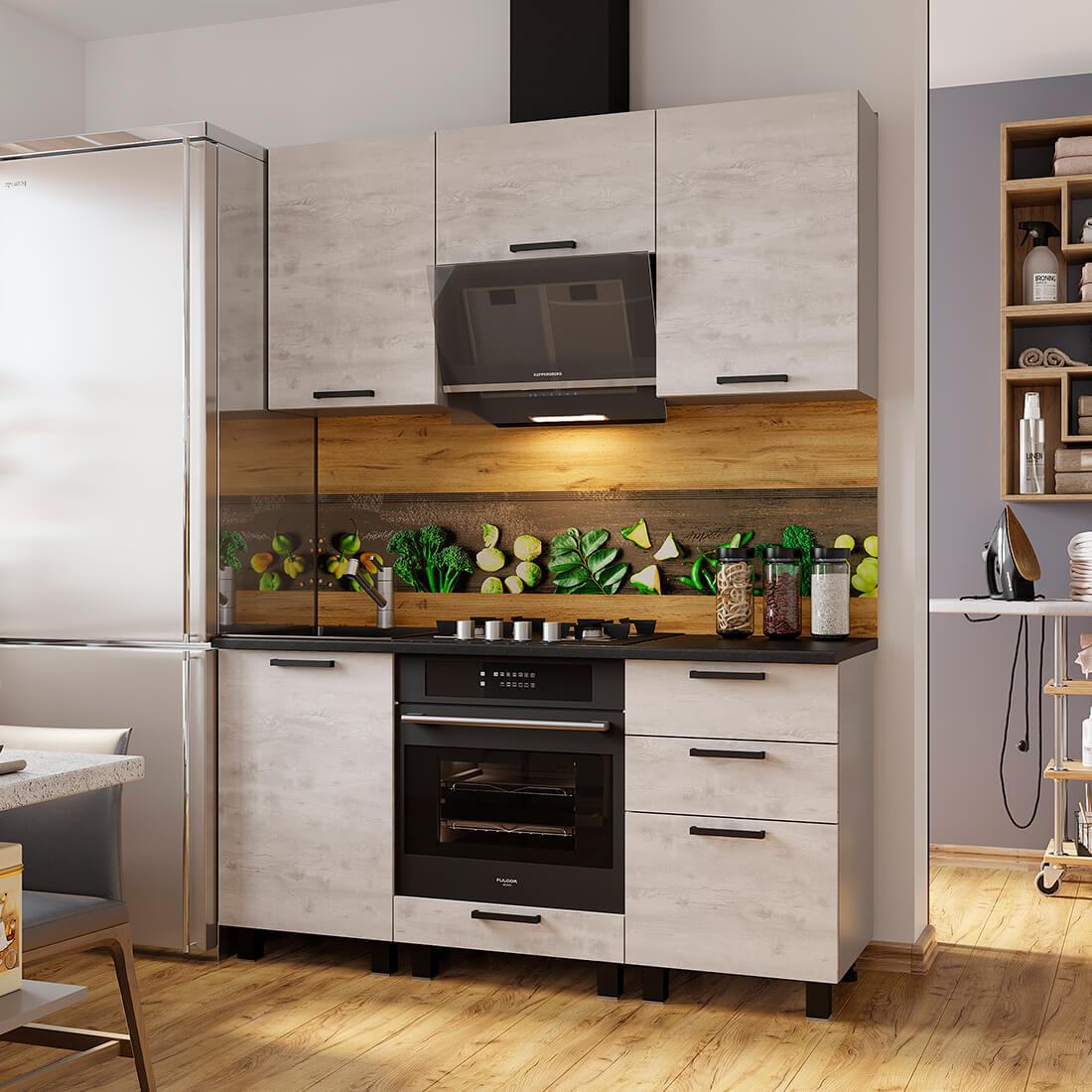 Кухня "Сканди" от бренда БТС – это сочетание стиля, качества и удобства. Изготовлена из надежных материалов (ЛДСП), кухня имеет ширину 1600 мм, высоту 2140 мм и глубину 500 мм, что позволяет оптимально использовать пространство вашей кухни. Российское производство гарантирует соответствие высоким стандартам качества и безопасности. В дополнение к этому, вы получаете гарантию на изделие сроком 24 месяца. Приобретая эту модель, вы делаете выбор в пользу современного дизайна и долговечности.