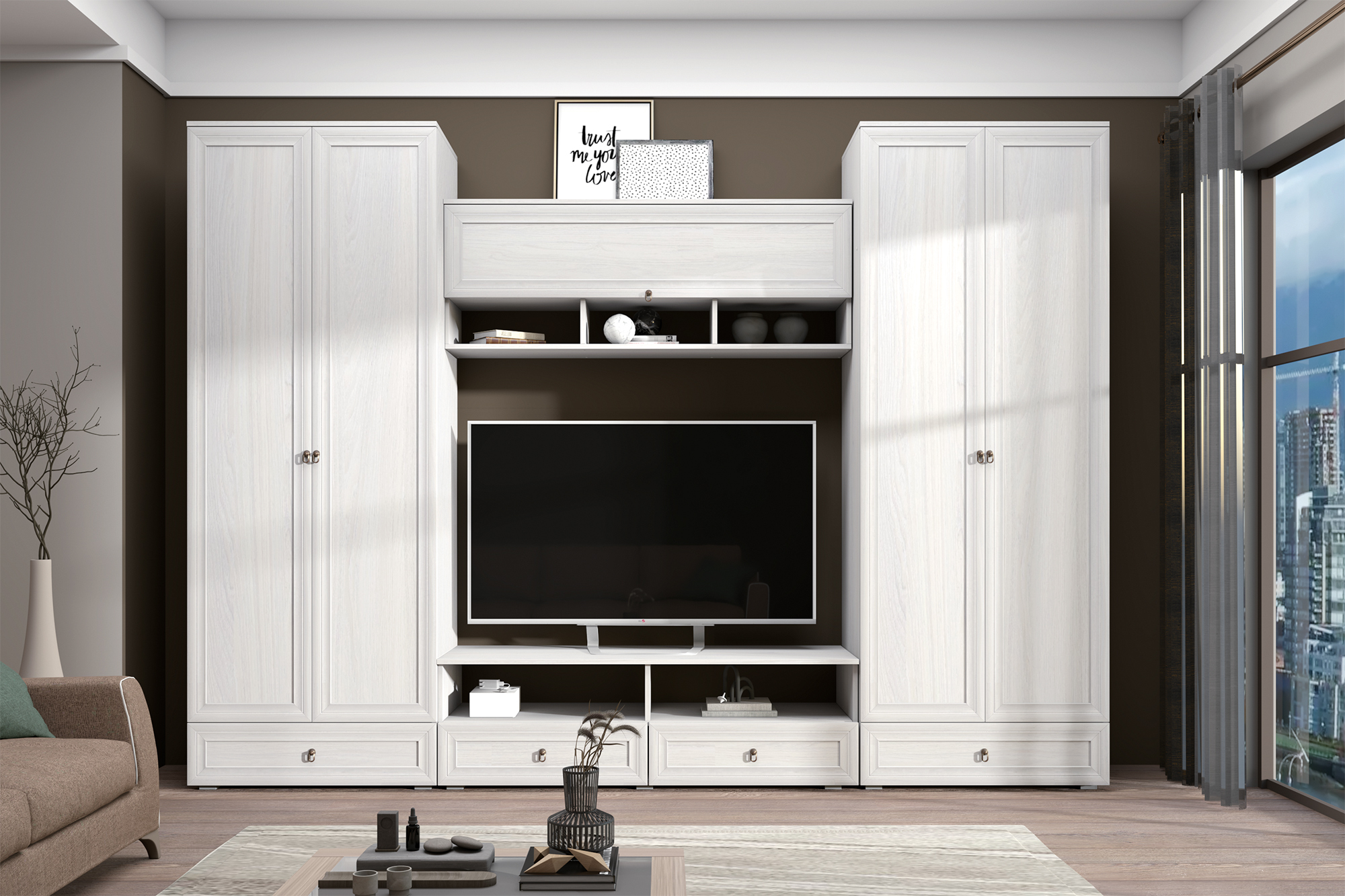 Модульная гостиная "Алисия" от бренда Зарон — это идеальное решение для вашего дома! Изготовлена из качественного ЛДСП, этот комплект мебели отличается стильным дизайном и функциональностью. Размеры (ШхВхГ): 2550 х 2150 х 475 мм позволяют легко разместить ее даже в небольшой комнате. Вам будет предоставлено 24 месяца гарантии на все детали производства России. Сделайте свой дом уютнее уже сегодня!