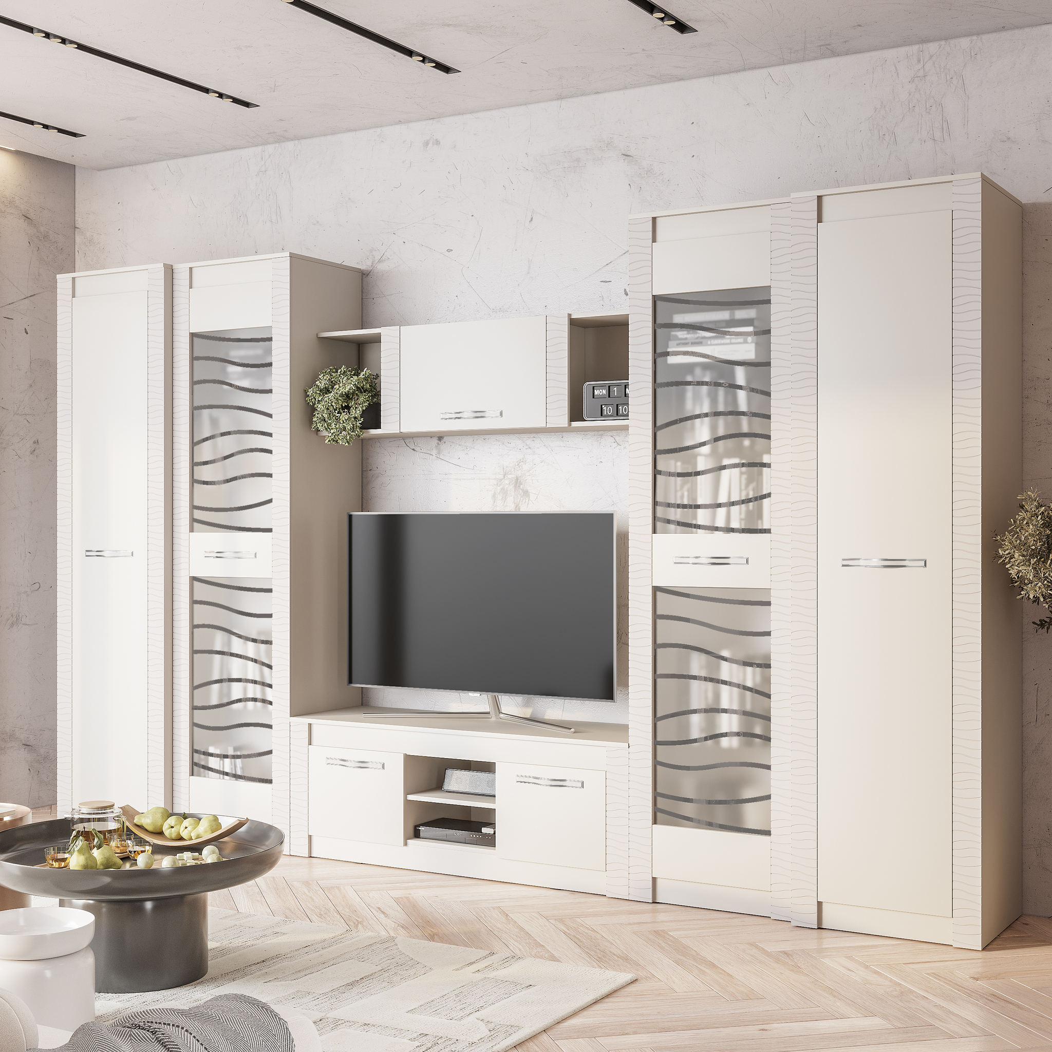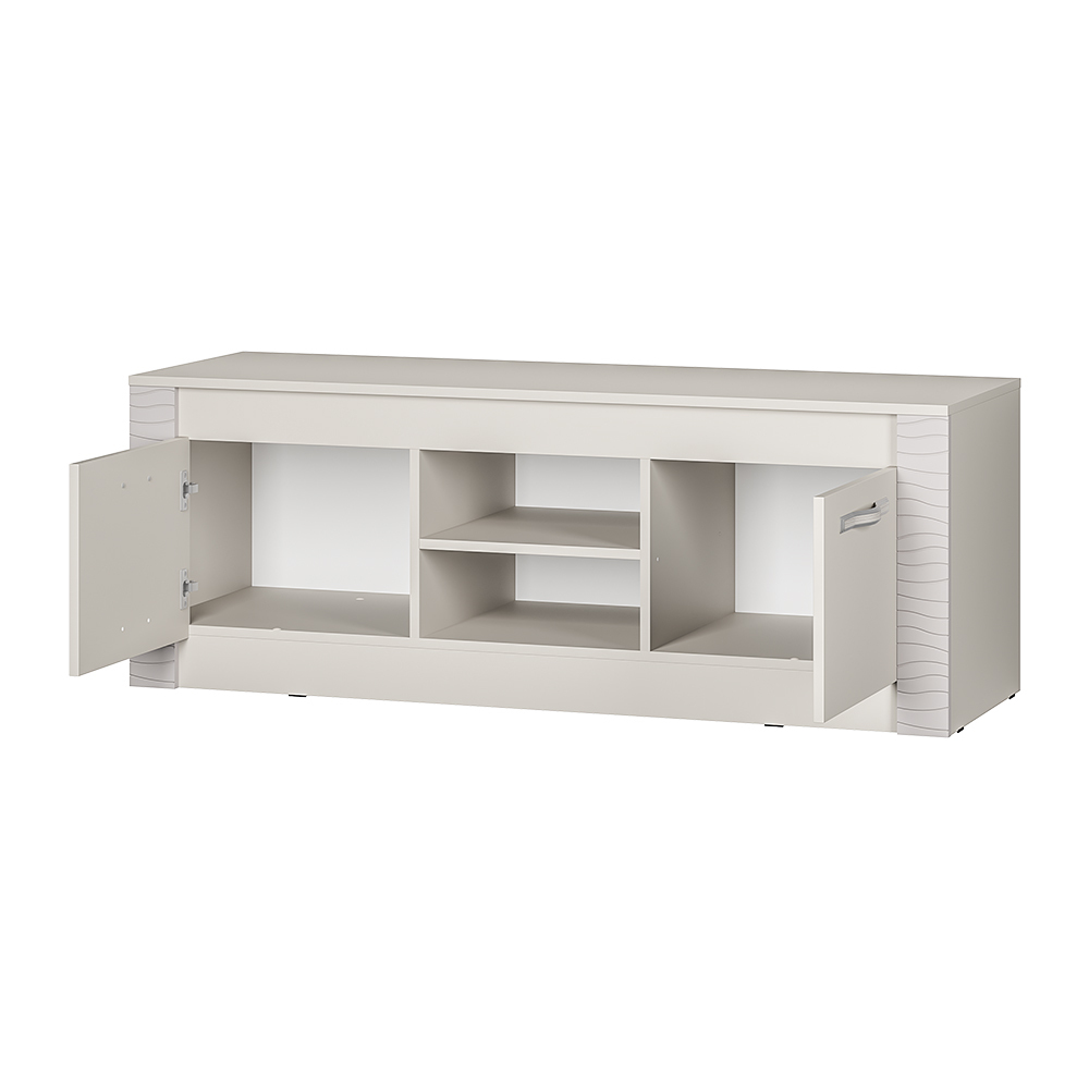 Стильная и лаконичная тумба под ТВ "Монако" станет украшением вашей гостиной. Модель выполнена в едином стиле с другими модулями мебельной коллекции Монако. Она изготовлена из высококачественной ЛДСП цвета белого ясеня и имеет декоративную отделку фасадов из МДФ. Изделие состоит из двух центральных открытых ниш, а также полок, спрятанных за распашными дверцами. На столешнице вы сможете разместить телевизор, а в зонах хранения – необходимые вещи и технику.