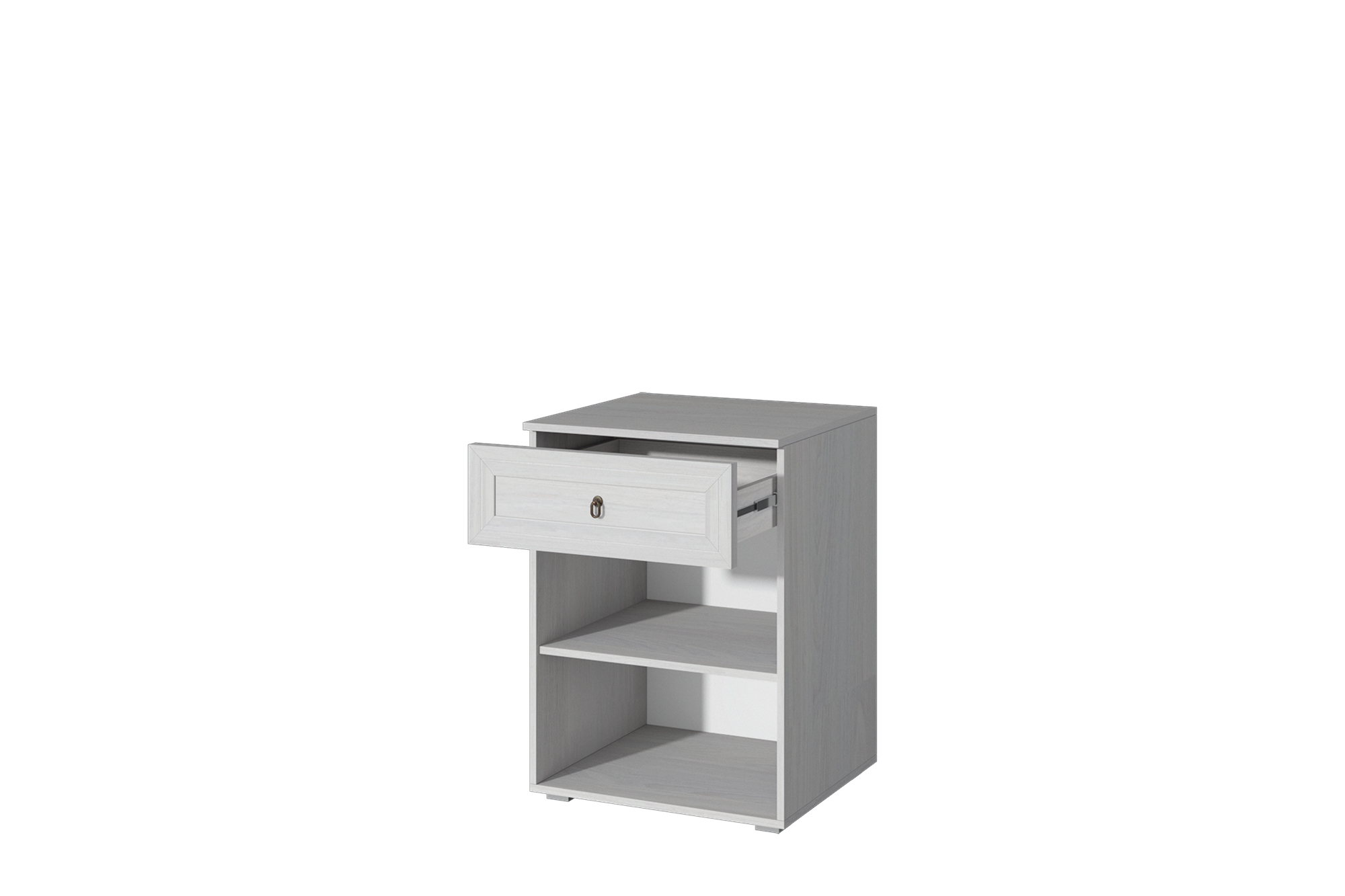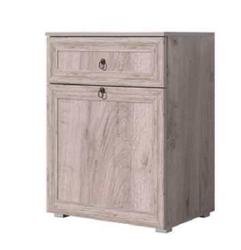 Тумба является одним из элементов модульной системы "Алисия", рекомендуется комплектовать с зеркалом "Алисия". Тумба включает в себя выдвижной ящик на шариковых направляющих и отделение для хранения с полкой. Металлические ручки "Кольцо" бронзового цвета с патиной.