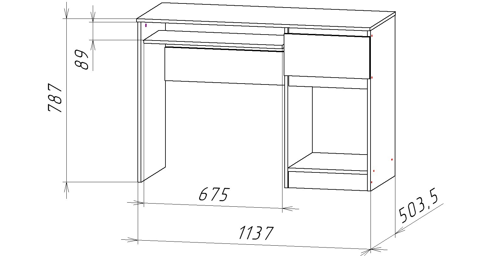 Столешница стола достаточно просторная, чтобы вместить компьютер, монитор и все необходимые устройства. Ее размеры составляют 113 x 50 см, что обеспечивает комфортную рабочую зону. Стол изготовлен из высококачественных материалов, которые гарантируют его прочность и долговечность. Он выдерживает значительные нагрузки, что делает его идеальным для интенсивной работы за компьютером.
