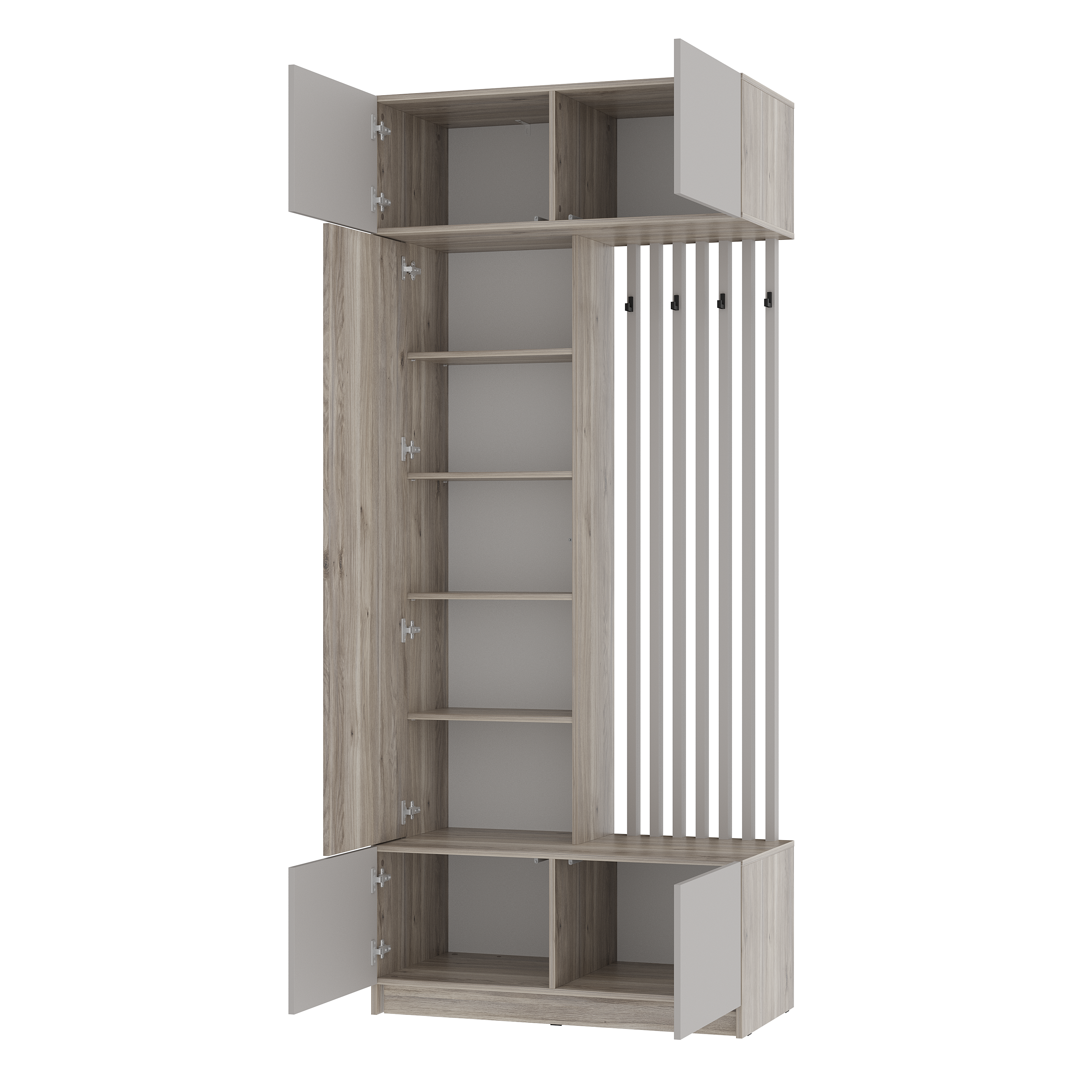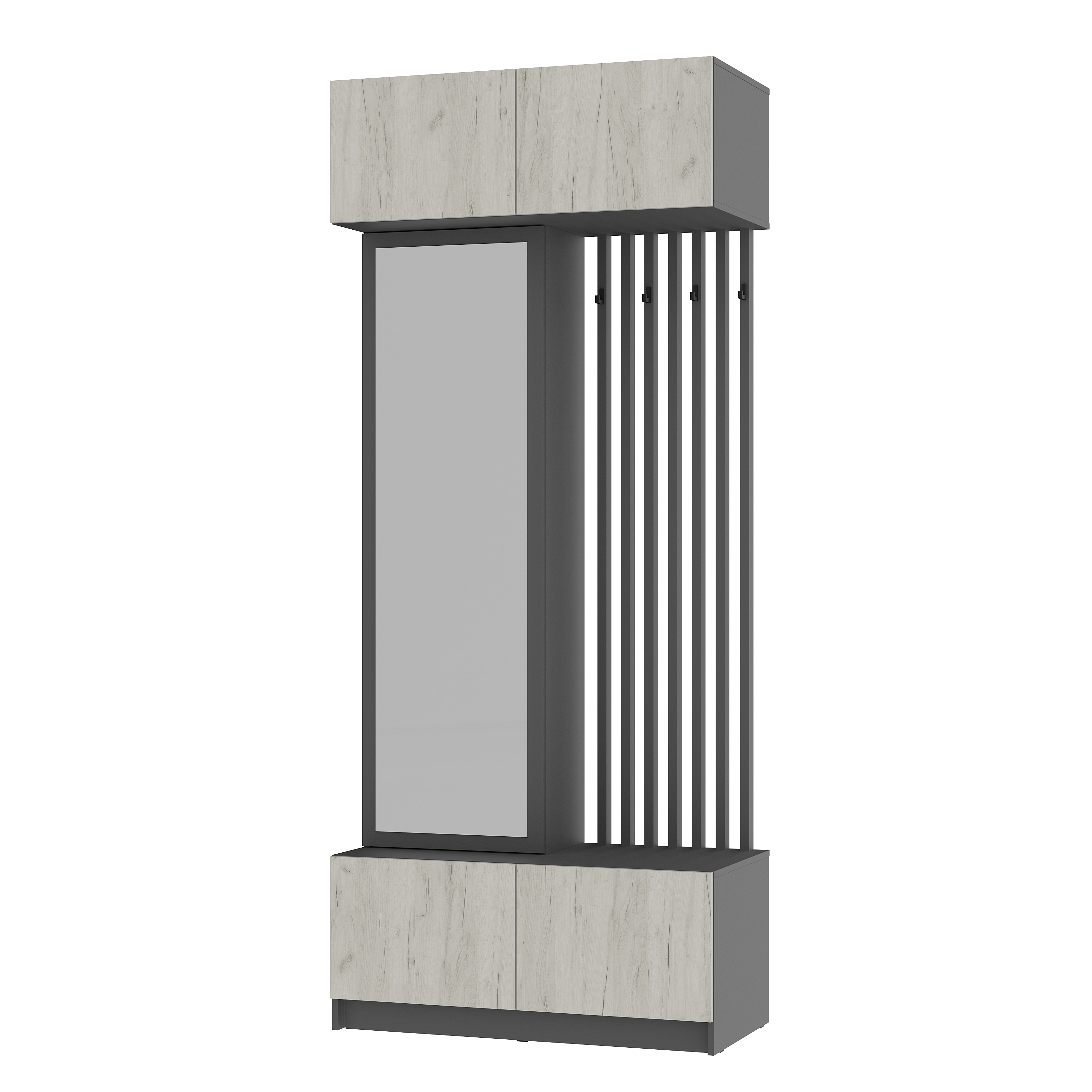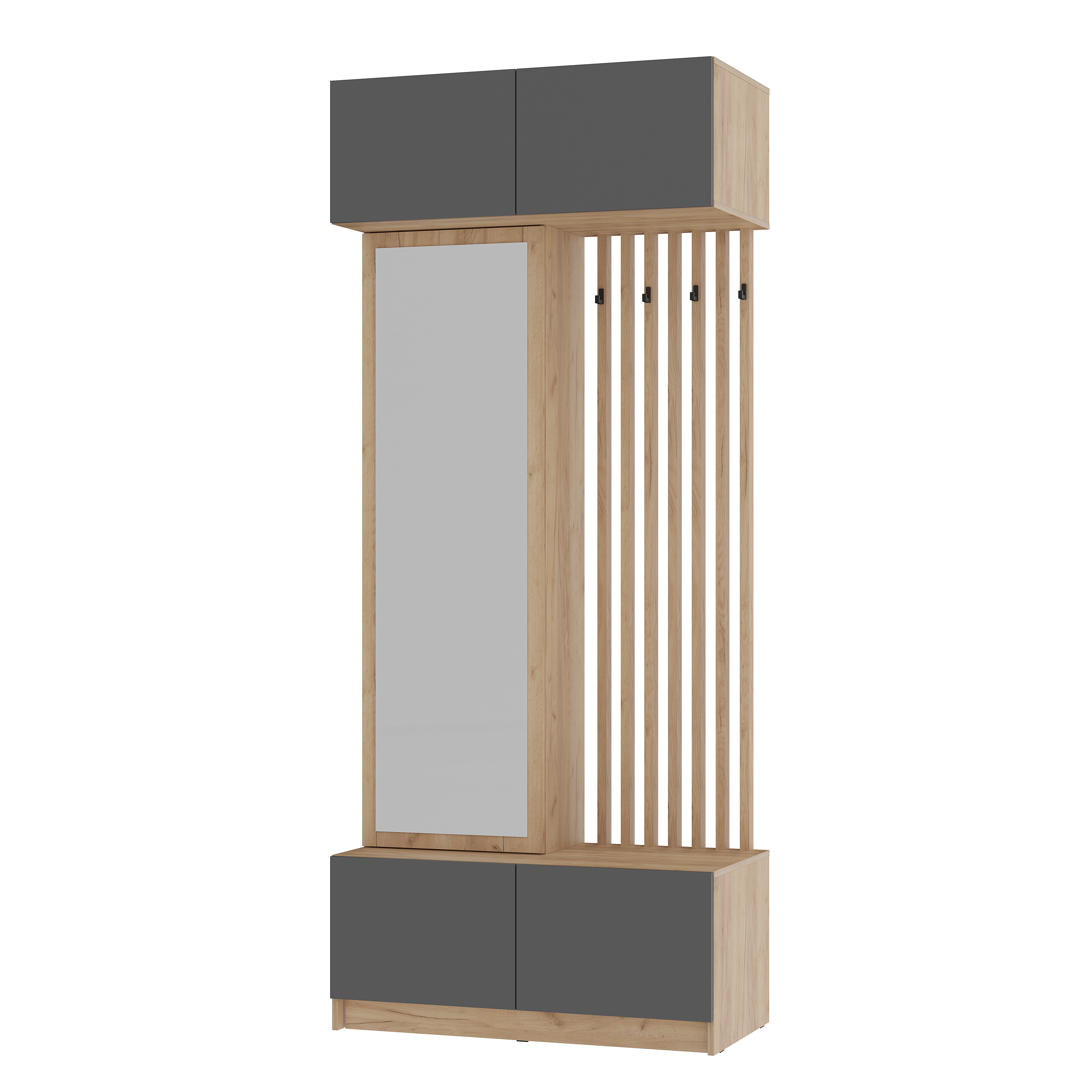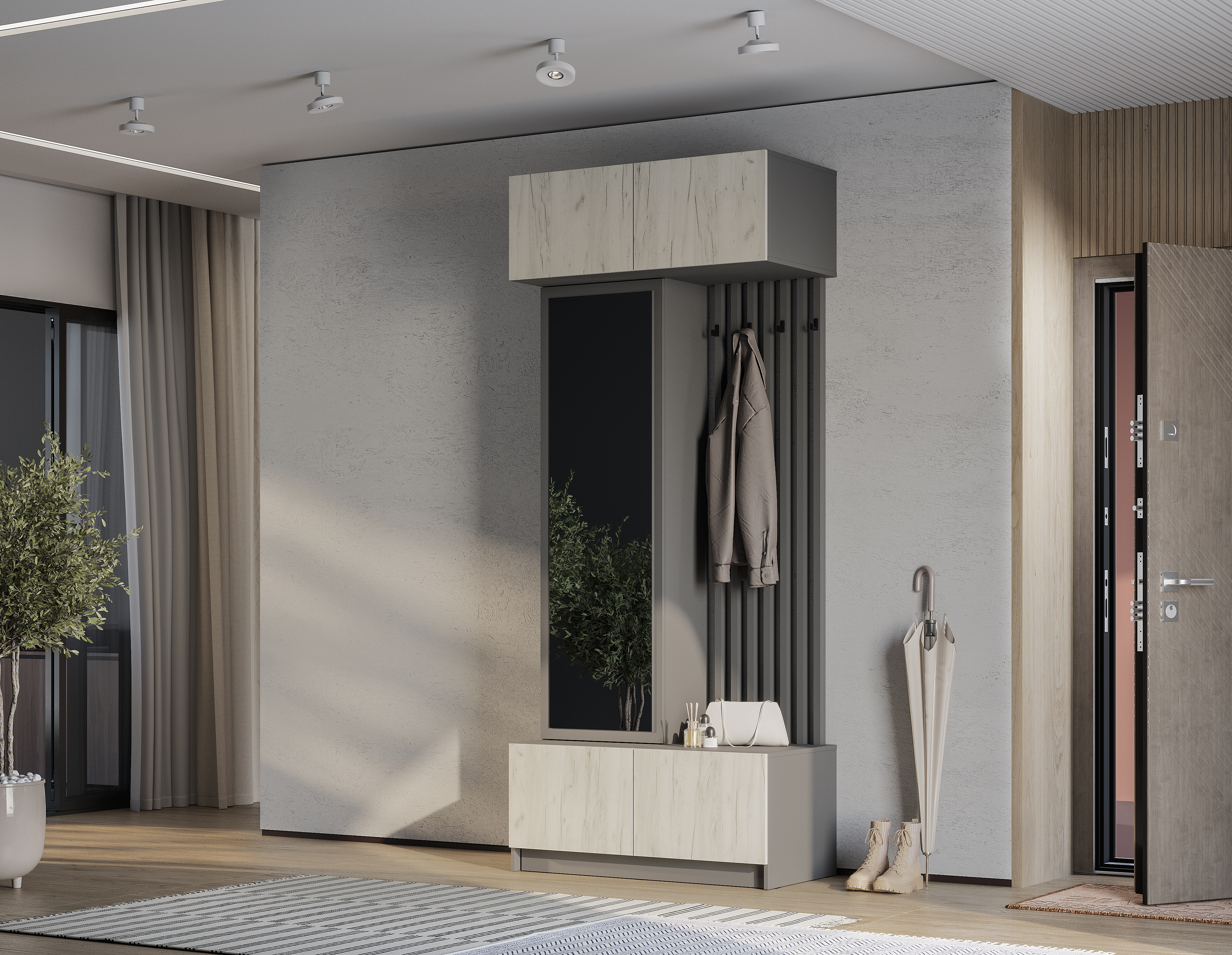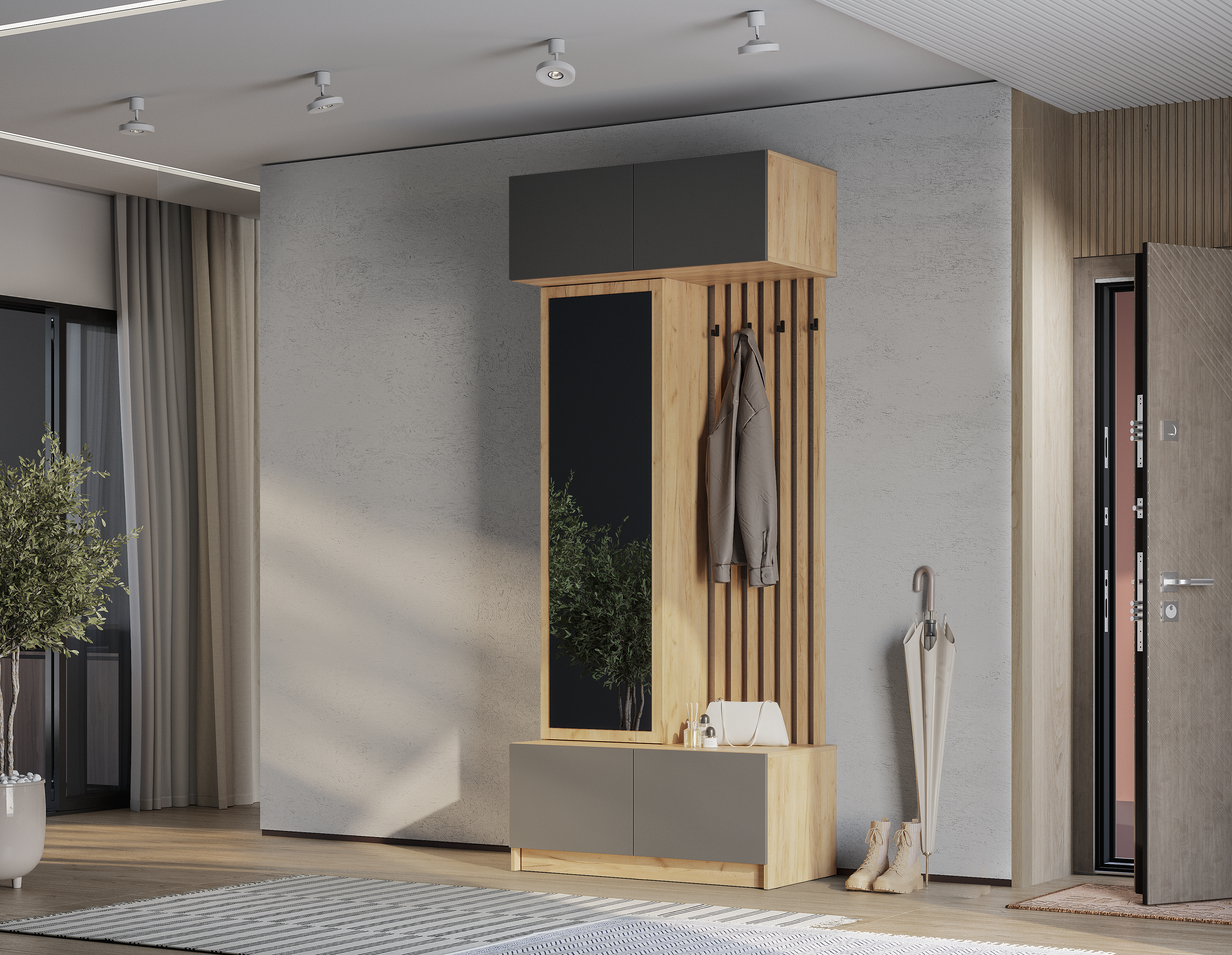 Стильная и компактная прихожая «Багира» – это оптимальное сочетание открытых и закрытых зон для хранения верхней одежды, головных уборов, обуви и аксессуаров.