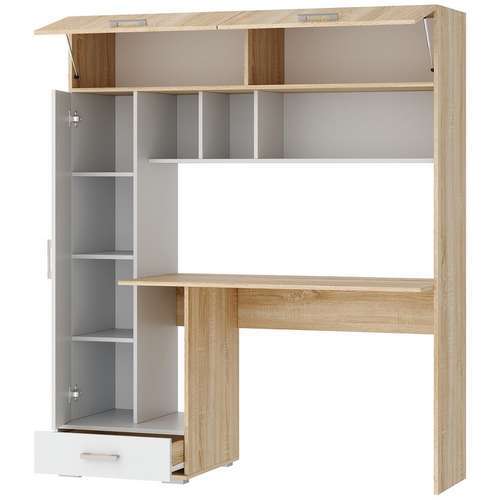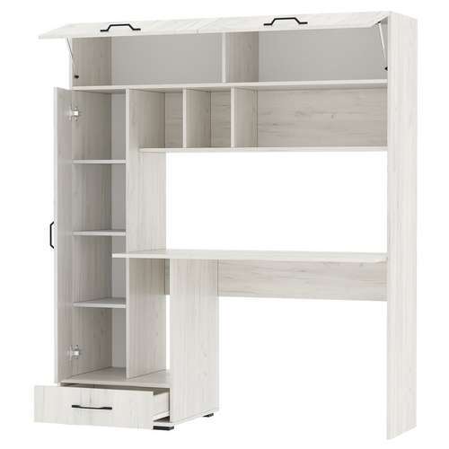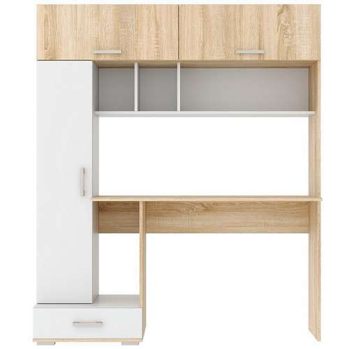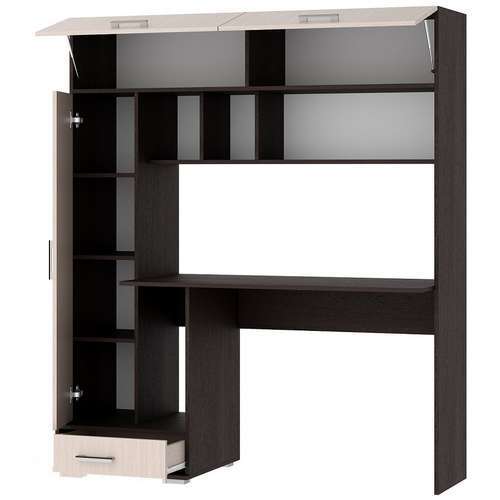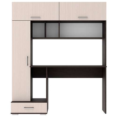 Письменно-компьютерный стол ПКС-1 с ящиком на роликовых направляющих. Для удобства открывания и удержания фасадов в открытом положении устанавливаются газлифты. Столешница обработана кромкой толщиной 1 мм, что делает работу за столом более комфортной и удобной. Чёрная матовая металлическая ручка. Рабочая зона стола 1200 х 430 х 570 мм.