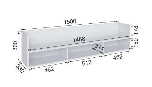 Полка Бруклин – широкий корпус из прочного ЛДСП (ширина 1500 мм, высота 360 мм) гармонично впишется в любой интерьер. Габариты изделия обеспечивают комфортное использование без потери пространства. Объемная глубина полки — 330 мм позволяет разместить больше нужных вещей.