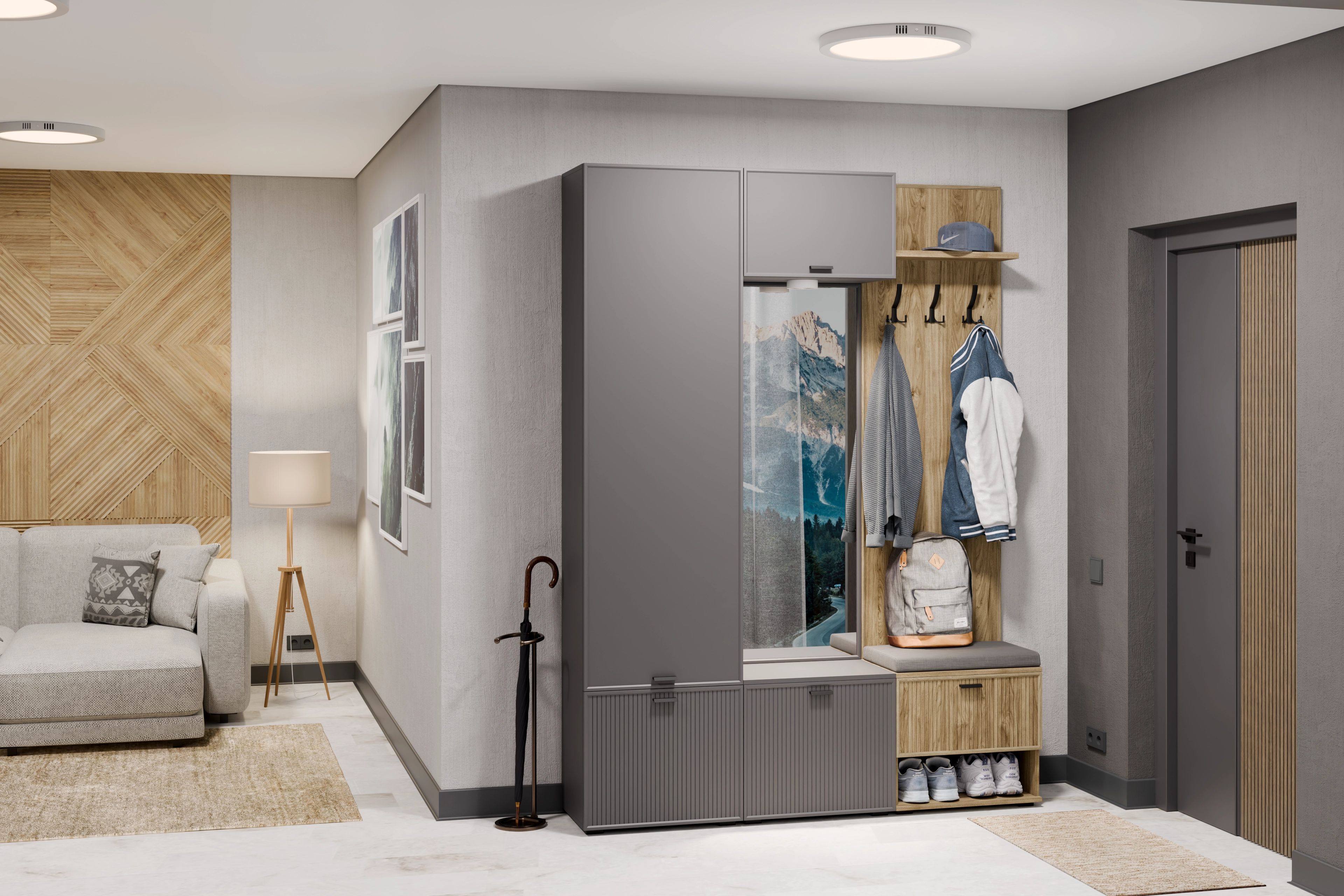 Применяемые материалы: корпус ЛДСП, фасад МДФ. Габаритные размеры: ВхШхГ - 2180х1620х352 мм. Прихожие СТЕЛЛА воплощают в себе актуальные тенденции мировой мебельной моды и позволяют создавать функциональные интерьеры в современном стиле, обеспечивающие высокий уровень комфорта. Сочетание нейтральных фоновых цветов и акцентных текстур дерева дают возможность открыть новые грани интерьера. Возможность использования различных вариантов вставки — дополнительное преимущество при планировании прихожей.