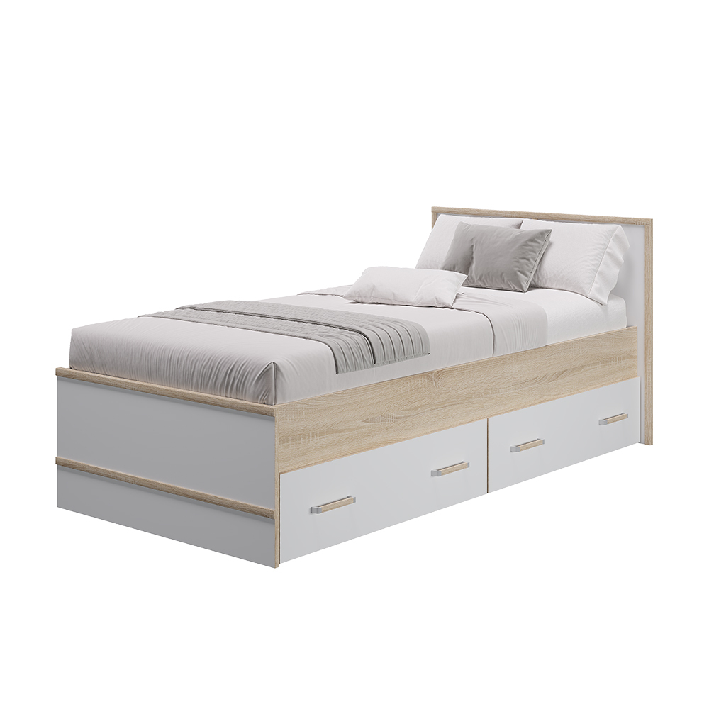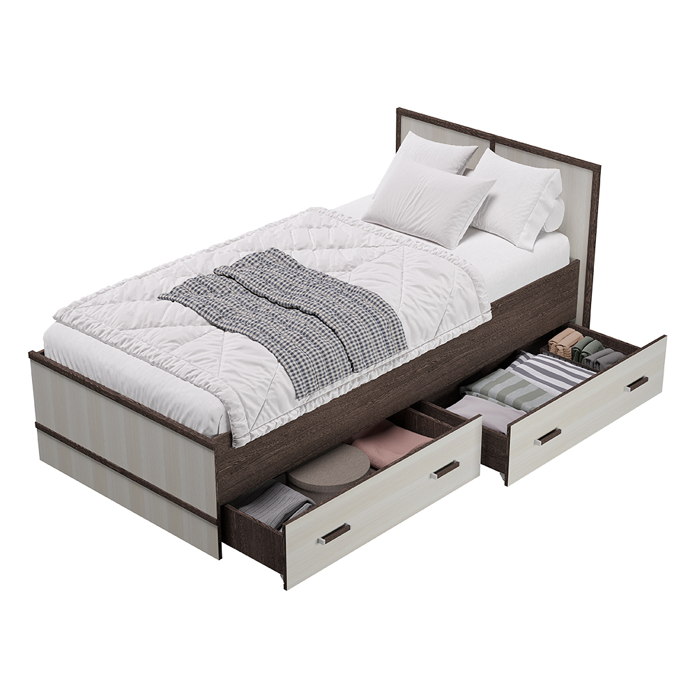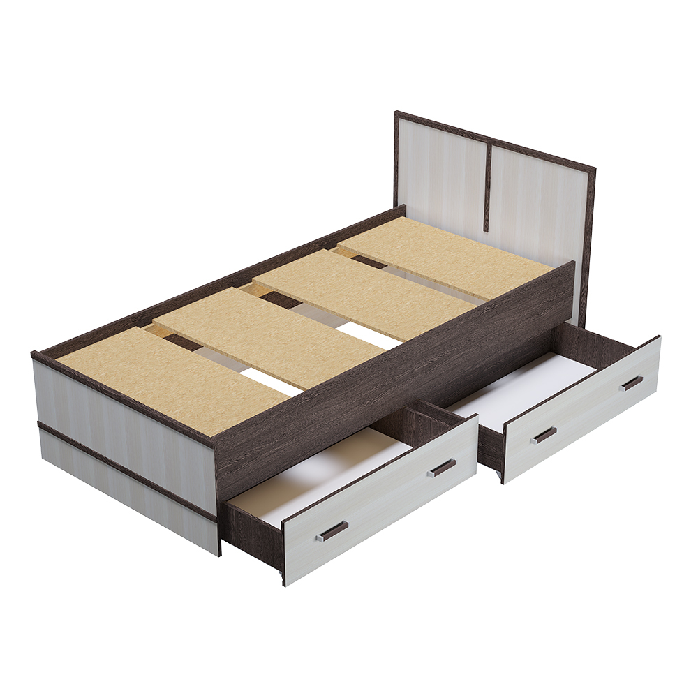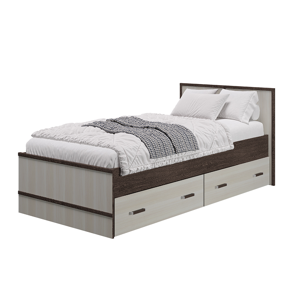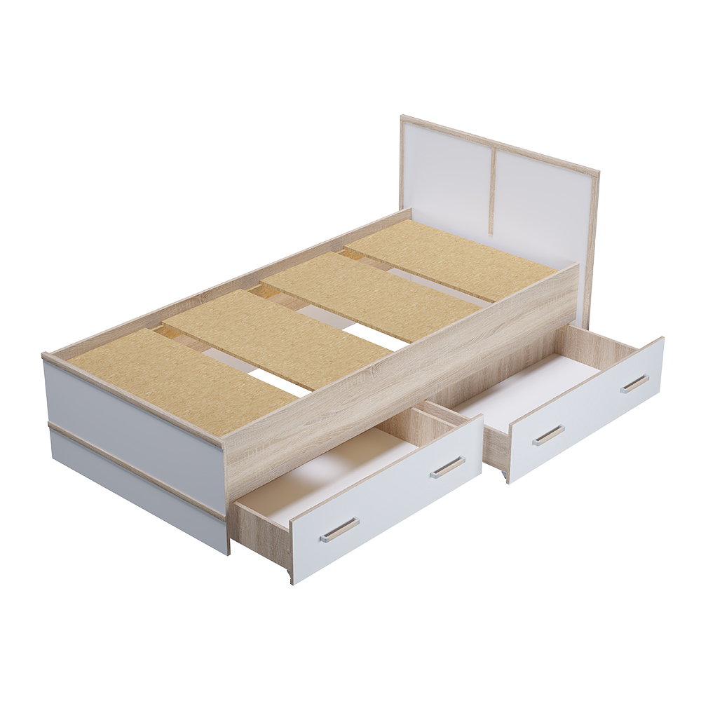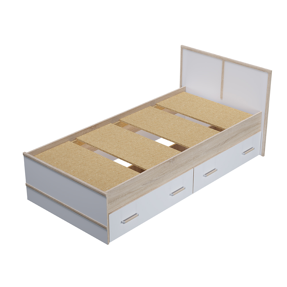 Кровать "Сакура" выполнена из ЛДСП высокого качества в контрастных цветах "сонома" и "белый", а также "венге" и "лоредо". Данная модель оснащена двумя выдвижными ящиками, в которых можно хранить постельные принадлежности или игрушки. Ящики находятся с одной стороны, но установить их можно с любой стороны. Изделие не имеет ножек, а значит избавит вас от скопления пыли под основанием. Данная модель кровати выпускается на фабрике без основания. Основание приобретается дополнительно (отдельно от кровати) - проложки ДСП, настил ЛДСП (с кромкой) соответствующих размеров