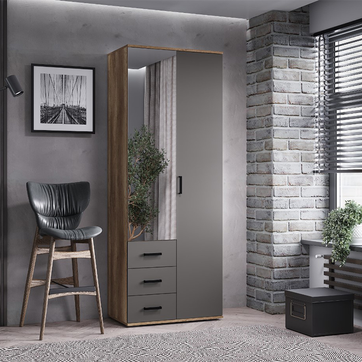 Шкаф 2-х створчатый "Вегас" ШК-03 - это компактное и стильное решение для гостиной или личной комнаты. Модель укомплектована тремя вместительными ящиками с эргономичными ручками, зоной для вертикального хранения с надёжной хромированной штангой и просторной верхней полкой. Стильная зеркальная дверца с еврокромкой добавит оригинальности вашему интерьеру. Максимальная нагрузка на полку - 10 кг, на штангу - 10 кг, на ящик - 5 кг.