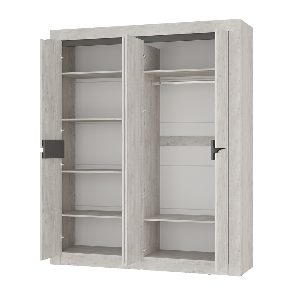 Спальный гарнитур «Леонардо» прекрасно впишется в любой современный интерьер. В комплекте есть всё необходимое для обустройства пространства: широкая кровать и коллекция модулей для хранения одежды, аксессуаров и постельных принадлежностей. Лофтовое цветовое решение корпусов и фасадов – настоящий тренд нашего времени – бетон пайн светлый. Простой и выразительный, продуманный и небрежный, функциональный и непритязательный – он создаёт атмосферу уличного искусства, а текстура старого дерева добавляет декору индивидуальности. Современные решения в сочетании с классическими оттенками «бетон пайн светлый» и «графит» создают атмосферу комфорта и уюта.