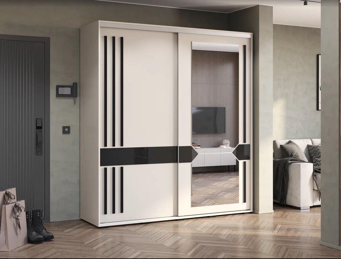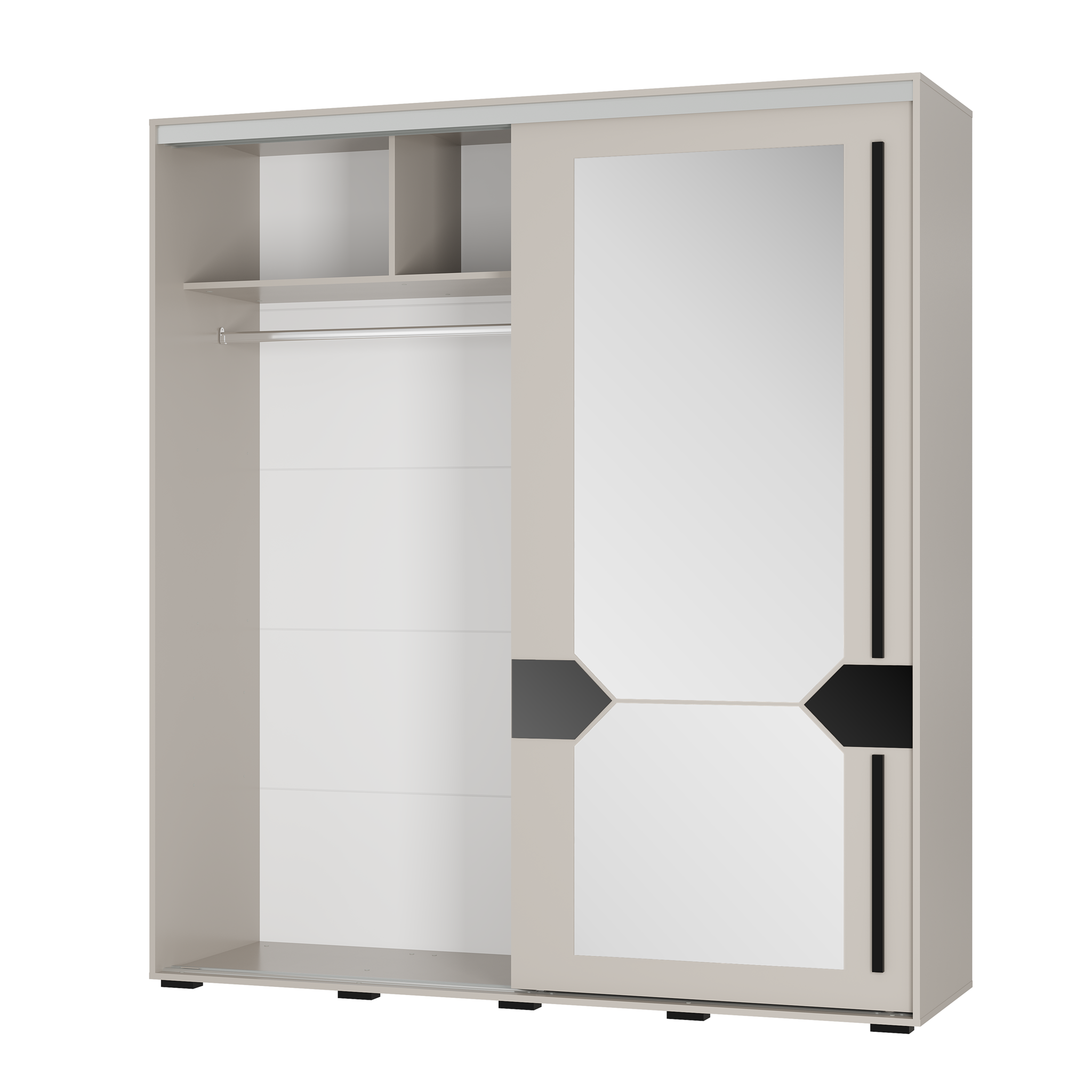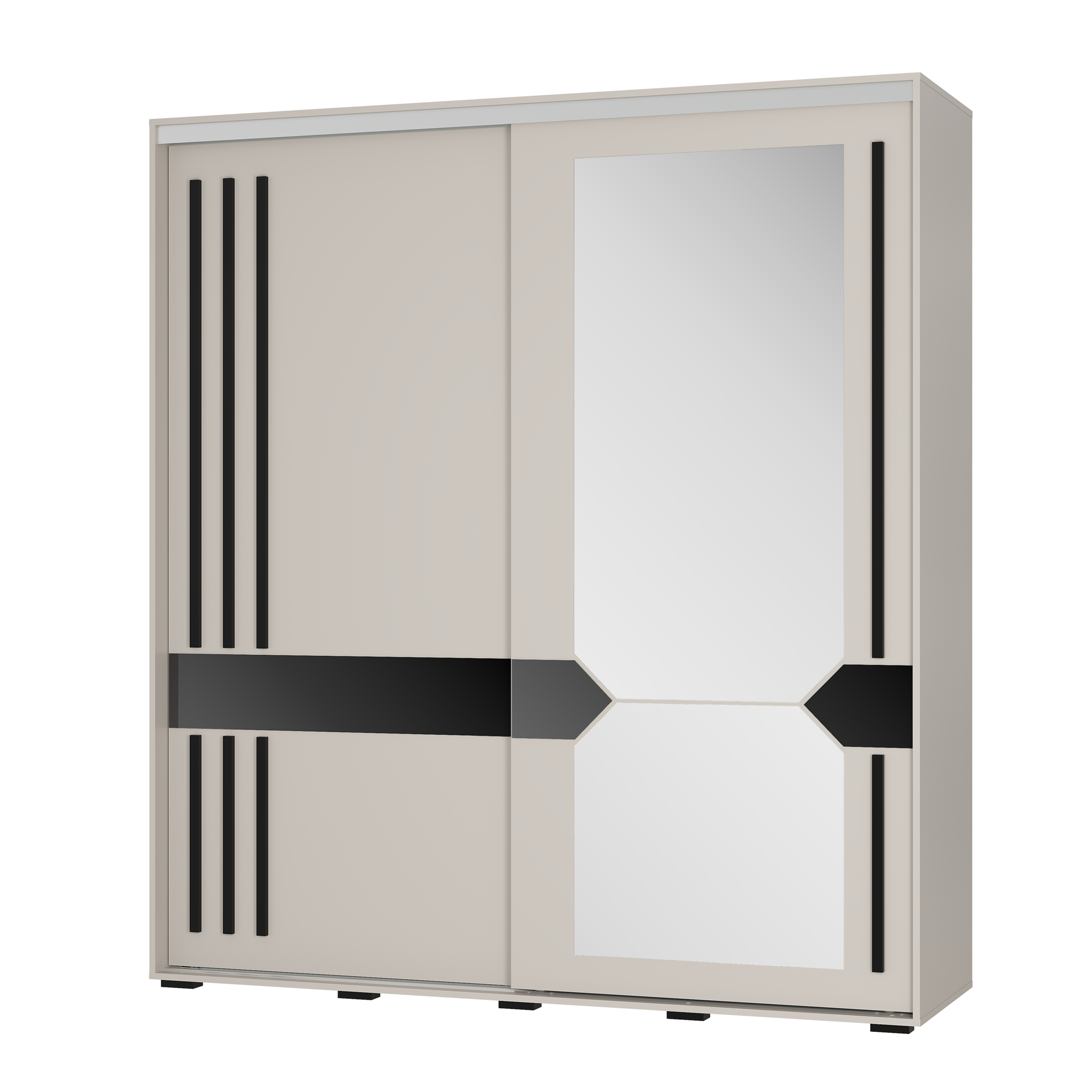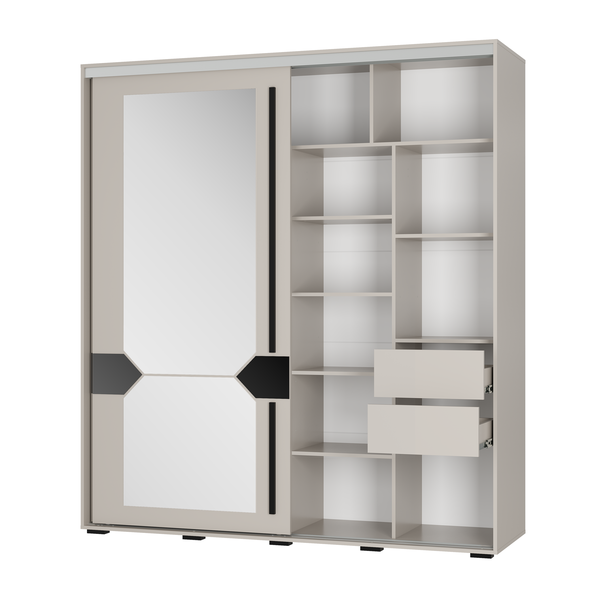 Шкаф-купе "Крафт-9" выполнен в трендовом декоре "кашемир". Двери шкафа украшены удлиненными черными ручками из МДФ-профиля, которые гармонично сочетаются с основным цветом и обеспечивают комфортное открытие. Шкаф комплектуется большим зеркалом, которое увеличивает пространство и создает стильный акцент, а черный лакобель придает современный и элегантный вид.