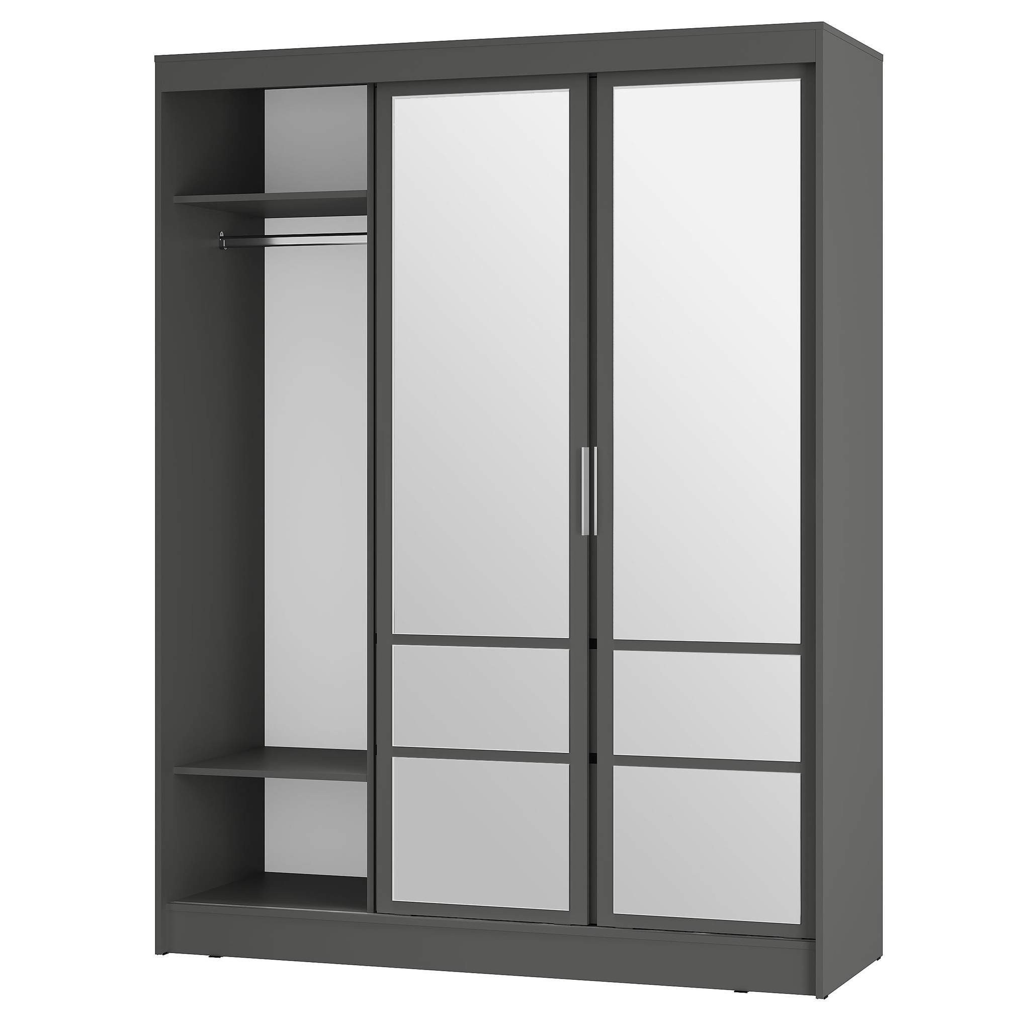 Шкаф-купе «Симпл» (ШКК-06) — вместительная и эстетичная модель для тех, кто предпочитает лаконичные интерьерные решения. Шкаф оснащен удобными ящиками и полками, а также пространством для вертикального хранения вещей. Вам не придется покупать большое зеркало, ведь фасад этой модели оснащен зеркалами с еврокромкой в комплекте, которые клеятся на фабрике. Направляющие у крайних створок СТ.