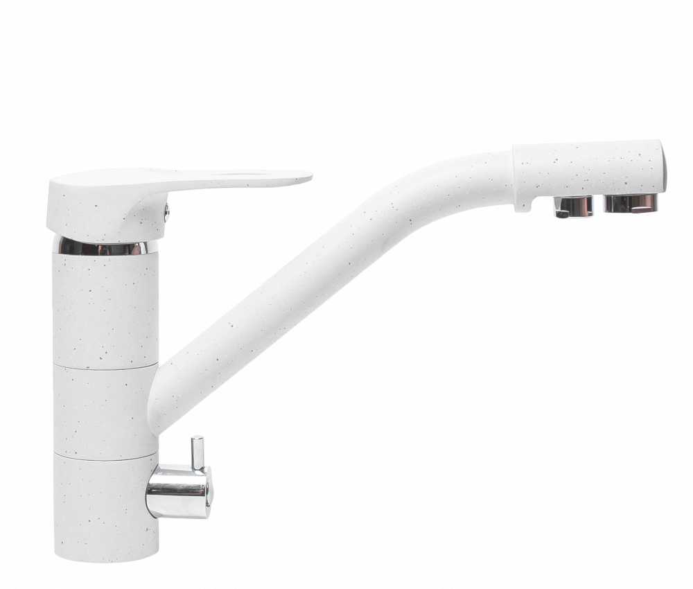 Смеситель GranAlliance G-7 с подключением фильтра питьевой воды. Выполнен из латуни/нержавеющей стали 304. Покрытие: порошковая краска+порошковый лак. Картридж 40мм.