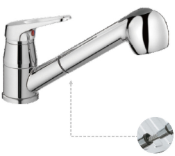 Смеситель GranAlliance G-9 матовый выполнен из латуни(сплав на основе меди и цинка). Картридж 35мм. Тип излива:выдвижная лейка с двумя режимами струи, с вращающимся изливом.