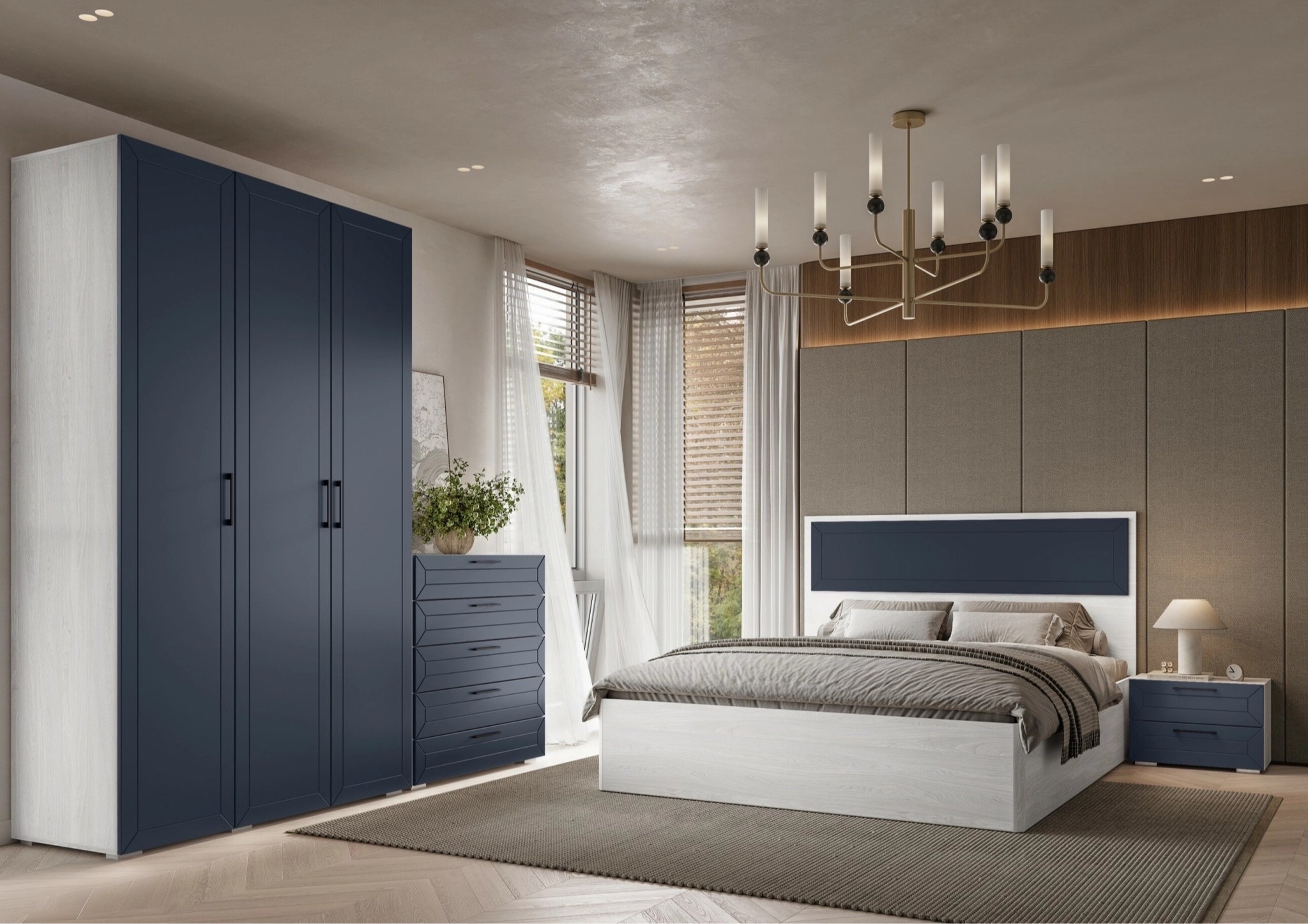 Современная Коллекция Глэдис выполнена из современных материалов и представлена в совершенно новой модной палитре цветов. Интересное дизайнерское решение использовано при оформлении лицевой стороны: глубокая фрезеровка имитирует рамку и придает фасадам объем и весомость. Всего лишь деталь, но мебель от этого преображается, выглядит дорого и благородно. При изготовлении модулей использованы направляющие полного выдвижения, позволяющие до упора выдвигать ящики, а также стильная эффектная фурнитура.