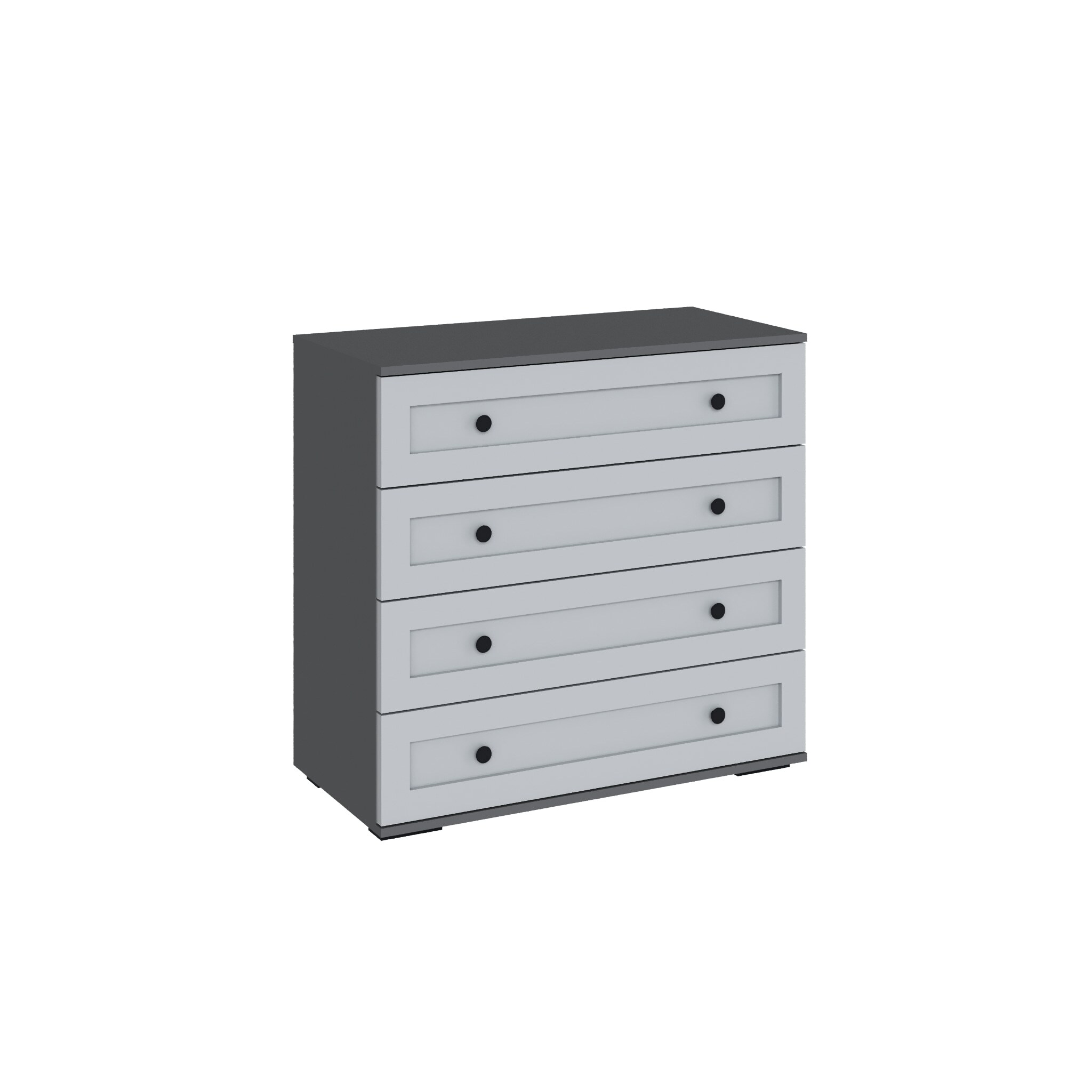 Комод в классическом стиле. Он оснащен металлическими направляющими полного выдвижения "Marshall", что обеспечивает легкое и плавное открывание и закрывание ящиков. Лицевая фурнитура выполнена из металла - ручки в виде кнопки, черного цвета. Опоры комода изготовлены из пластика, черного цвета.