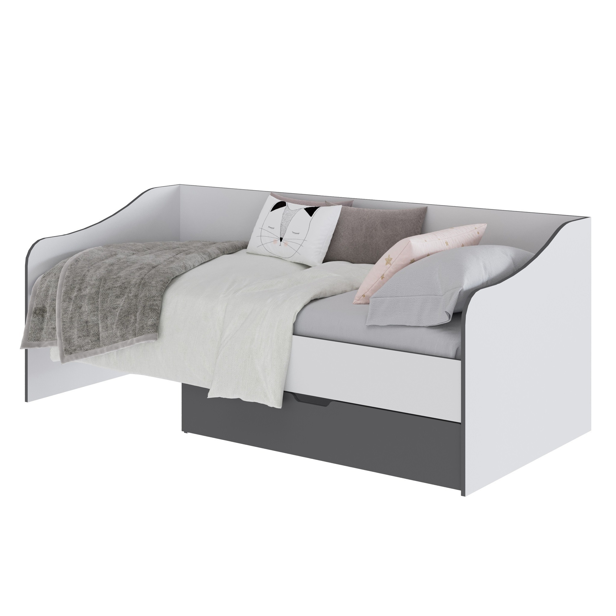 Детская кровать "Тэбби" с ящиком - это стильное и удобное решение для детской комнаты. Кровать обладает современным и лаконичным дизайном, который легко впишется в любой интерьер.