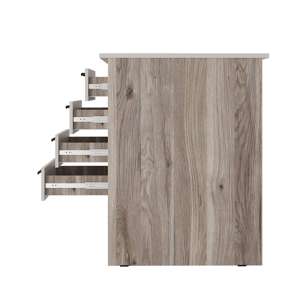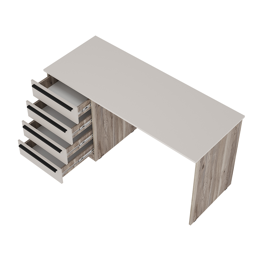 Письменный стол "Урбан" – это минималистичная стильная модель, которая подойдет для учебы и работы. На просторной столешнице можно удобно разместить все необходимые книги, технику и важные мелочи. В качестве дополнительного пространства для хранения можно использовать вместительные ящики с эргономичными пластиковыми накладными ручками черного цвета (430 мм).